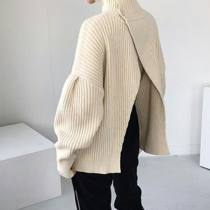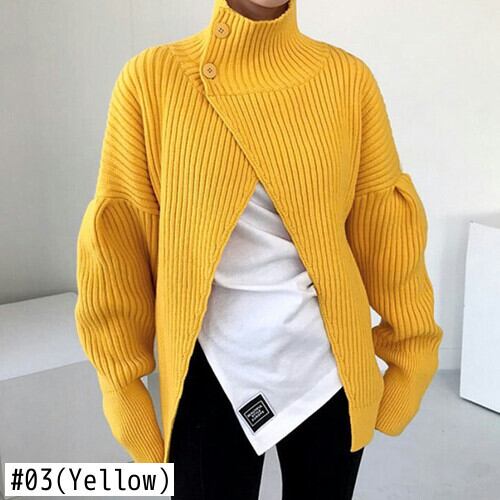 のみくま因果不規則なスプリット女性セーターボタンタートルネックランタンスリーブニット2021秋冬プル6V152 オータム 秋物 ウィンター 冬物 kor78403463998