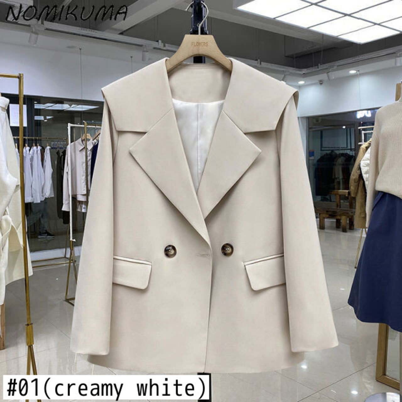 ノミクマターンダウンカラースーツジャケットダブルブレスト長袖レディースブレザー202スプリングソリッドコート ロング 春物 ソリッドカラー kor72922434280