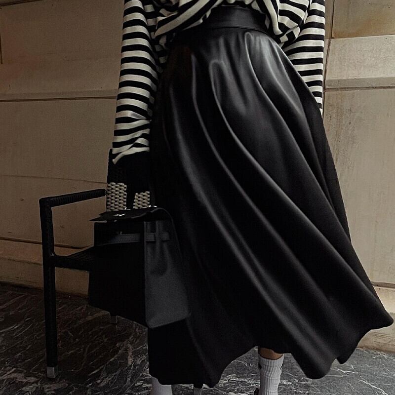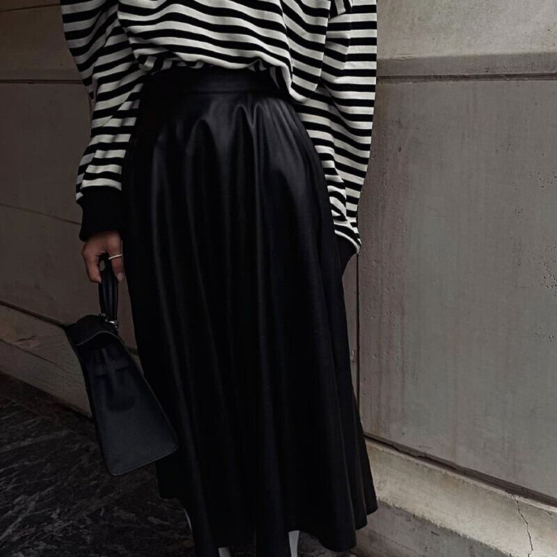 ノミクマPUレザーウーマンスカートウエストプリーツスカート2021秋冬ファルダスモーダ6X177 オータム 秋物 ウィンター 冬物 kor97846932171