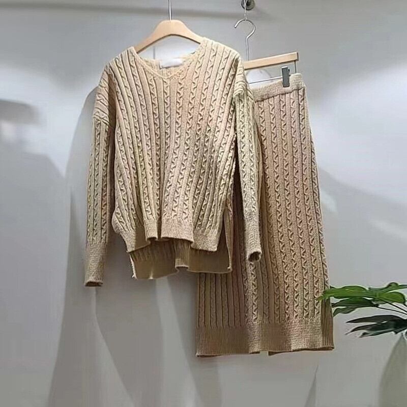 のみくまニットツイスト衣装レディース秋冬Vネックセーター+ウエストスプリットニットスカート20216N498 オータム 秋物 ウィンター 冬物 kor51669426845