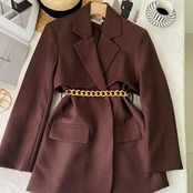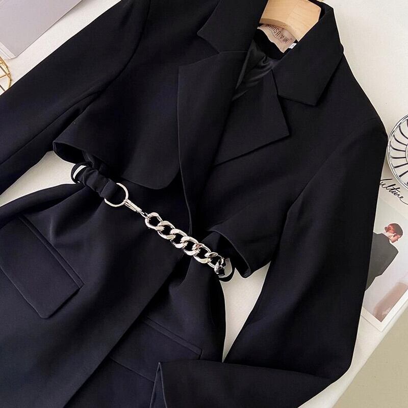 ノミクマ2022レディースブレザーコートチェーンベルトスリムウエストスーツジャケット長袖ノッチ付きカラーブレザー ロング ハーネス kor59043701626