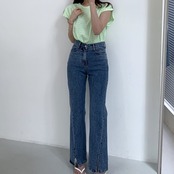 ノミクマウエストウーマンジーンズパンツシックヴィンゲロングパンツCausal2022 Spring Demin Flare Pants スプリング 春物 kor97407231535