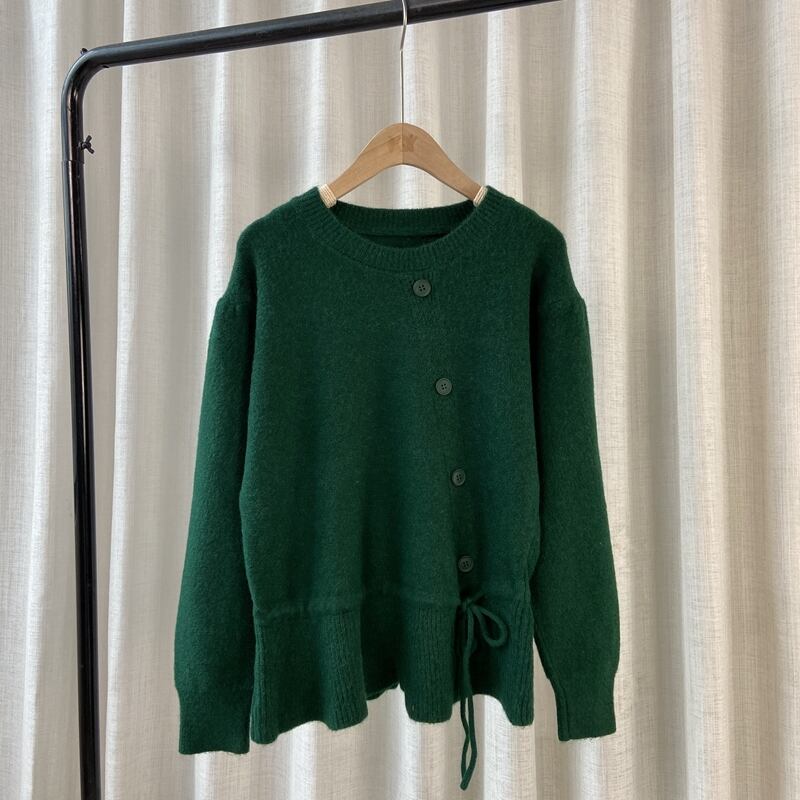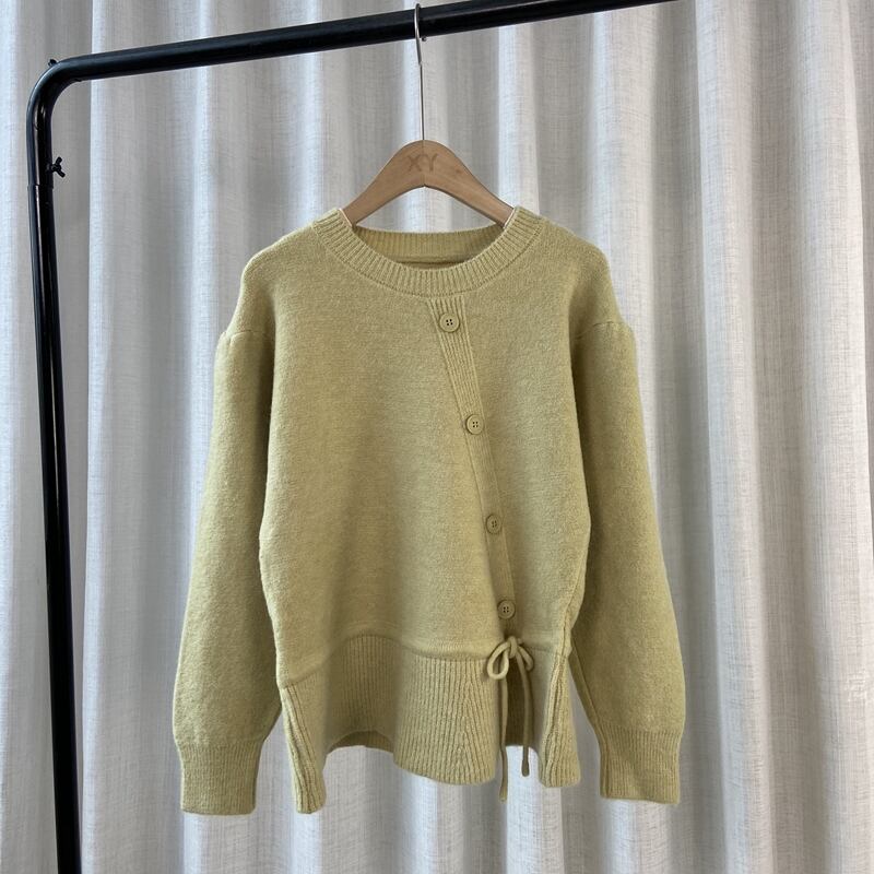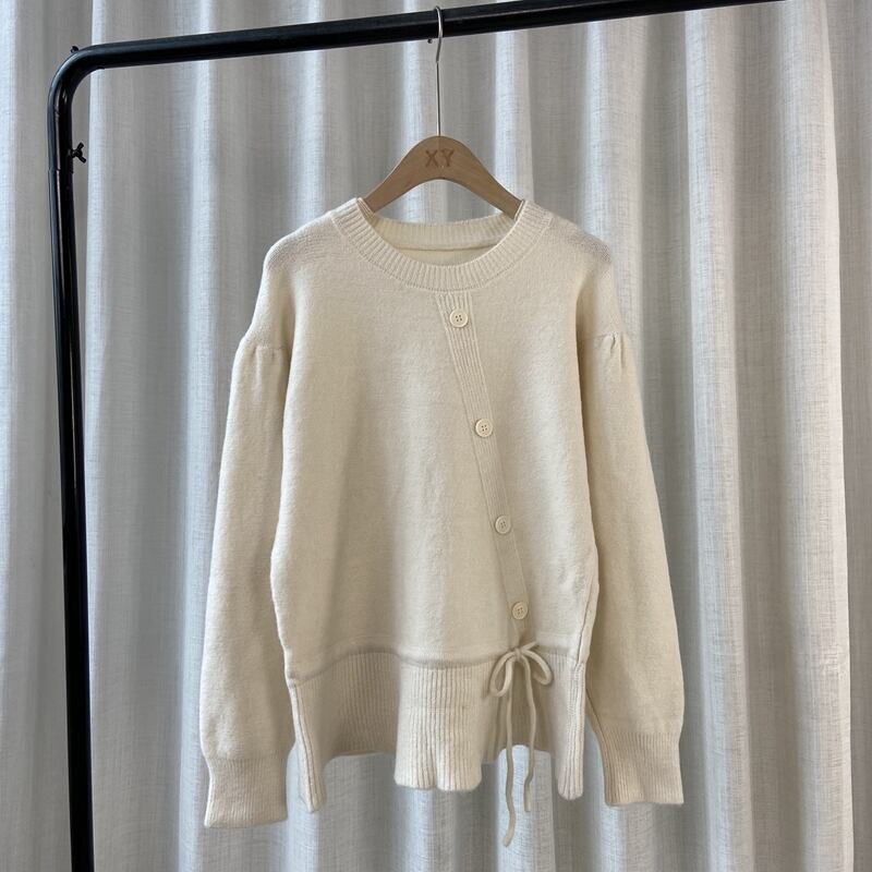 ノミクマレースアップスリムウエストセーター女性秋冬プル2021ボタンOネックプルオーバーニット6V536 オータム 秋物 ウィンター 冬物 kor27530909300
