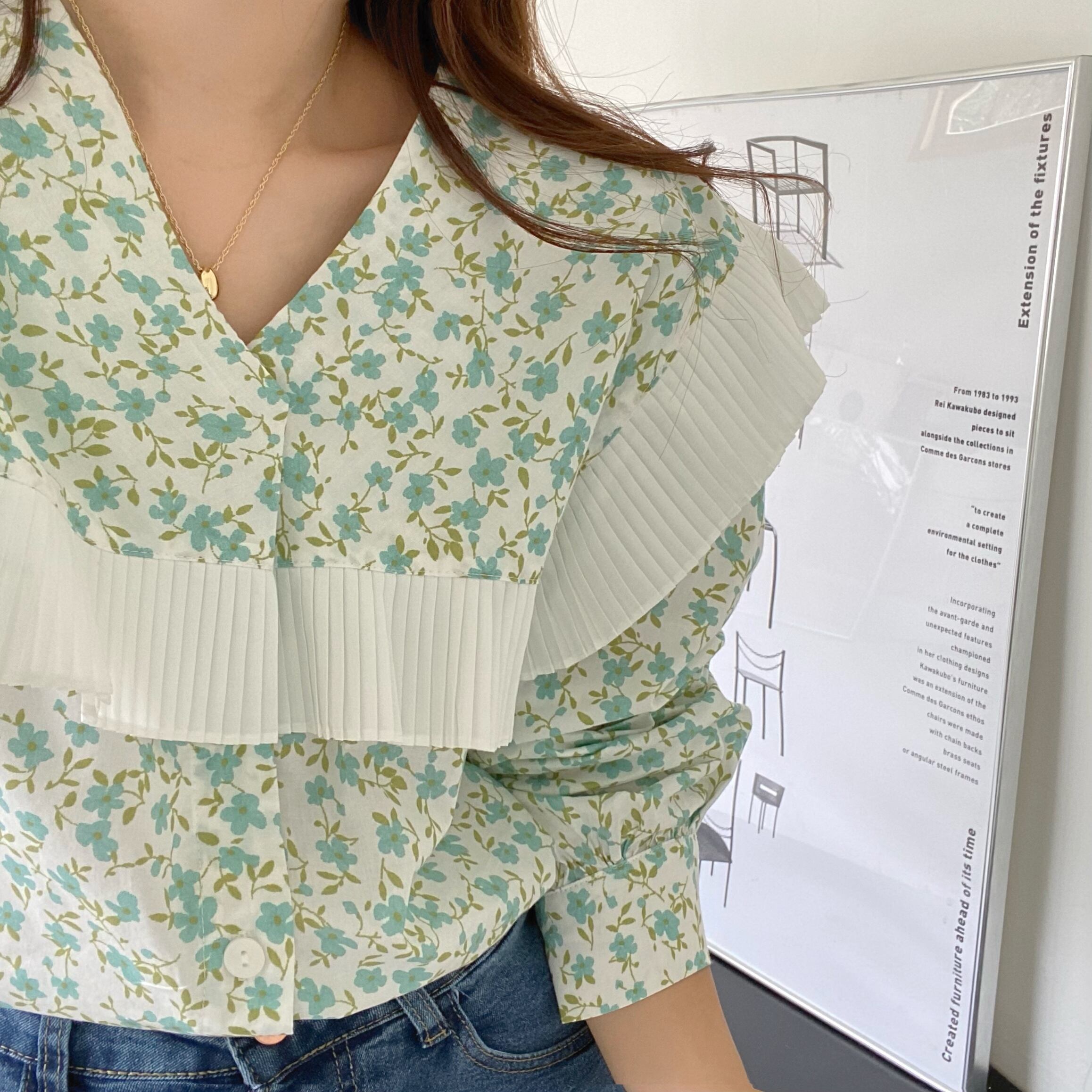 ノミクマ2022春花ブラウス折りフリルセーラーカラーシャツカジュアル長袖 ロング スプリング 春物 花柄 kor68875901464