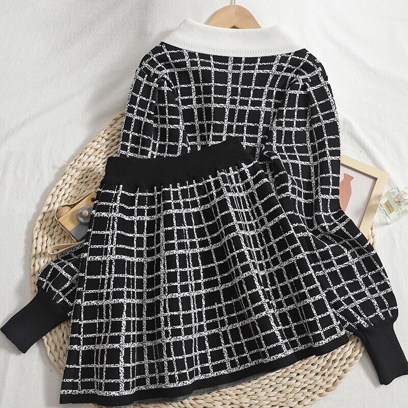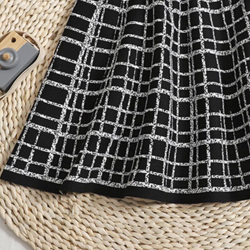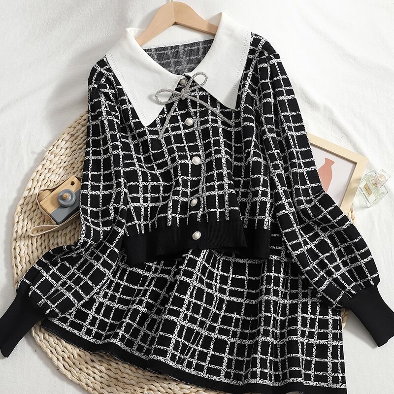 ノミクマ2022春の女性セットシックなスウィートショートカーディガントップ+ Aラインスカートニットコントラストカラーチェック柄ツーピース 大人ガーリー キュート カジュアル スプリング 春物 kor35788182881