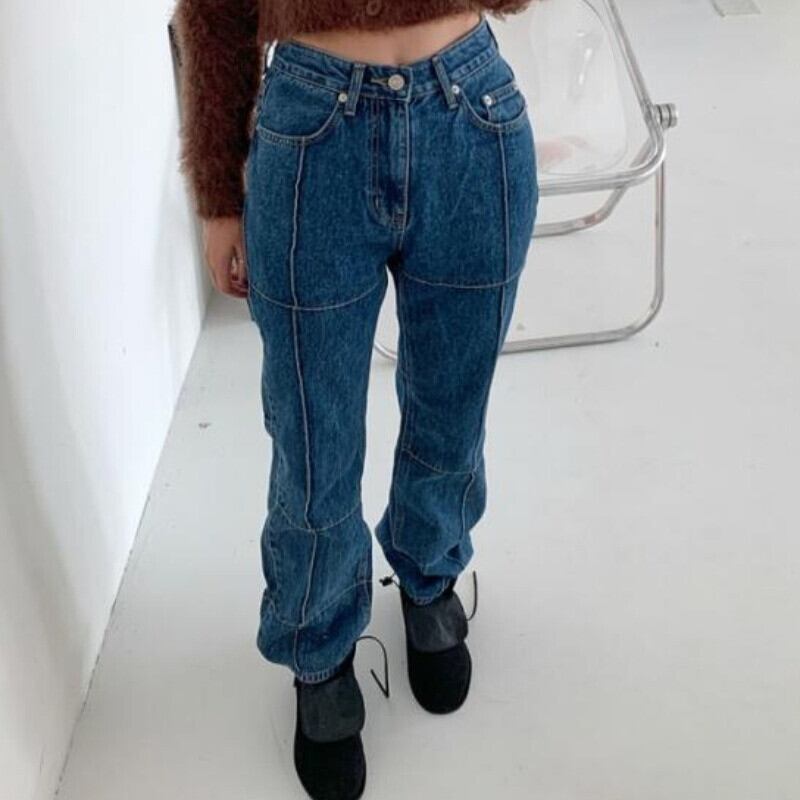 のみくまデミンパンツレディースウエストロングパンツCausal2022 SprignJeansワイドレッグパンツカプリパンツ ワイドパンツ kor88900417359