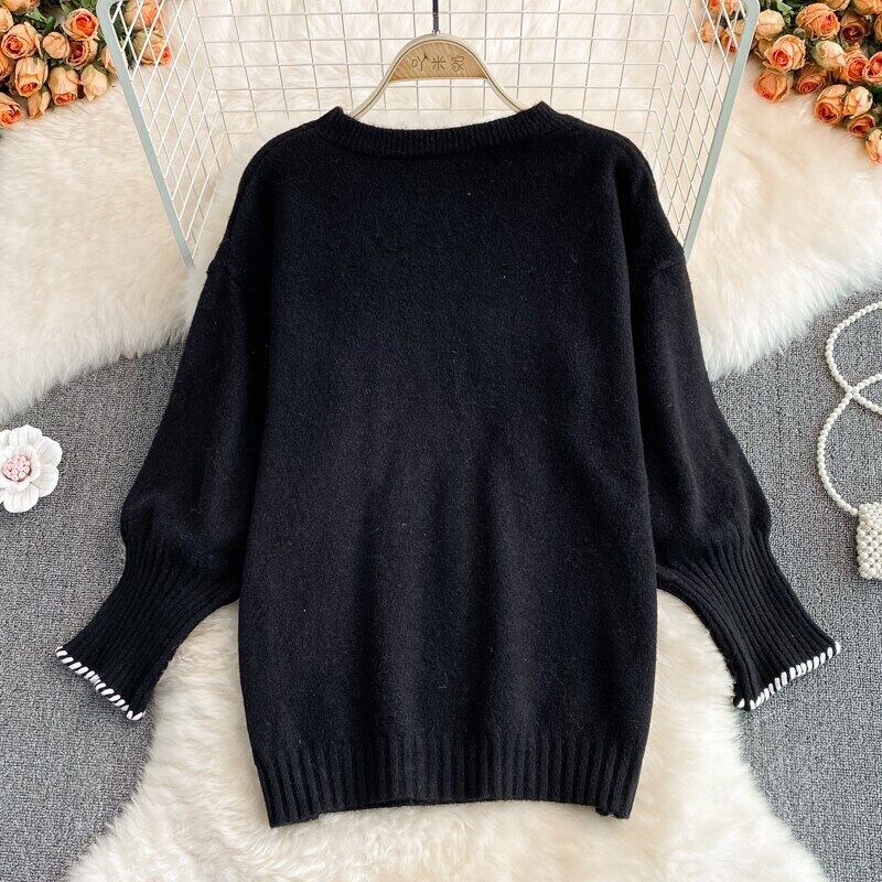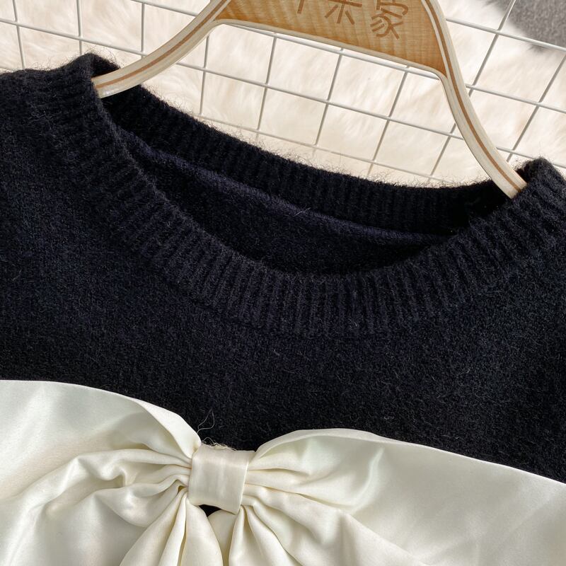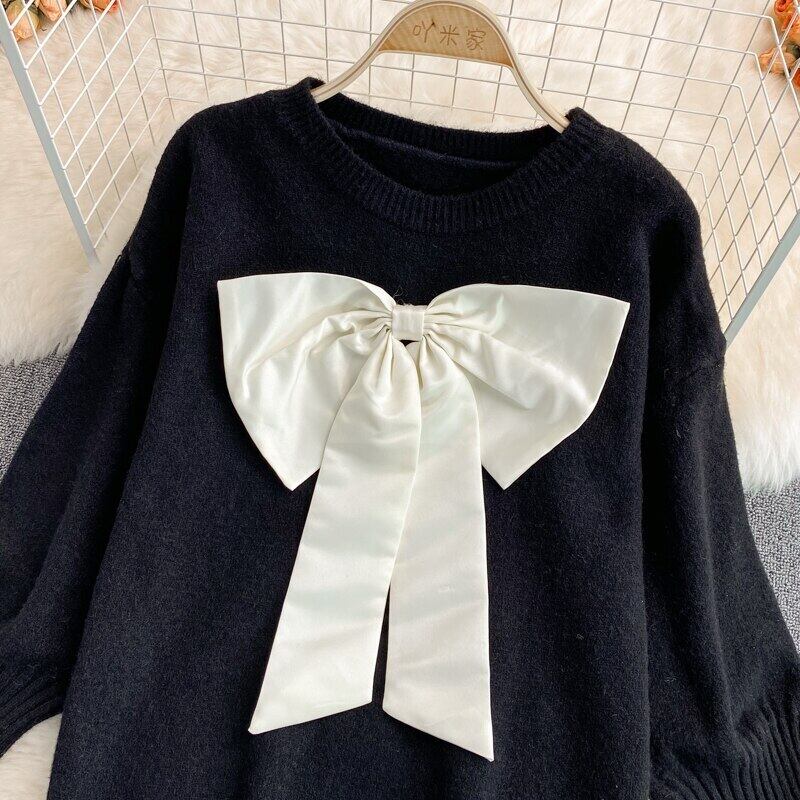 のみくまスウィートボウノットプルオーバーセーターカジュアル長袖Oネックニットトップス2021秋冬プル6V782 ロング リボン 大人ガーリー キュート オータム 秋物 ウィンター 冬物 kor32066122982