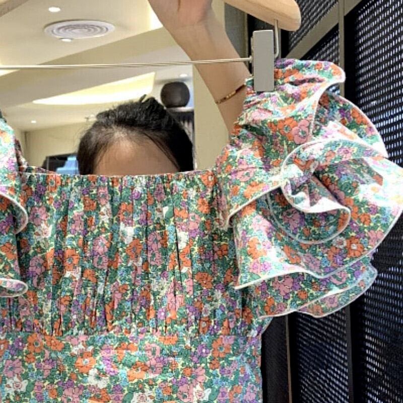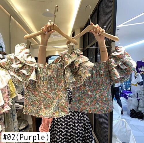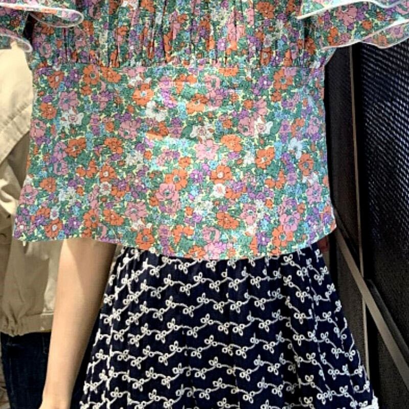 ノミクマ2022春夏フローラルシャツシックフリルスウィートパフスリーブスクエアカラーブラウススリムショートフェミニマ ラッフル 大人ガーリー キュート カジュアル スプリング 春物 サマー 夏物 花柄 スクウェア kor19062977555