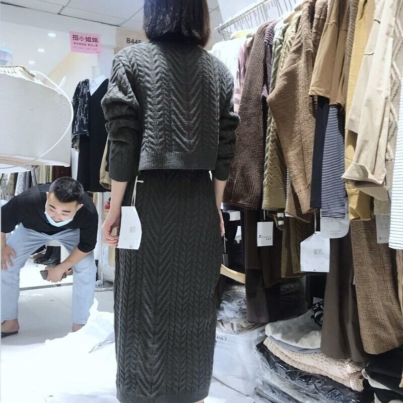 ののみくまニットツイストスカートセット長袖Oネックセーター+ウエストニットスカート2021衣装6V264 ロング kor65465053783