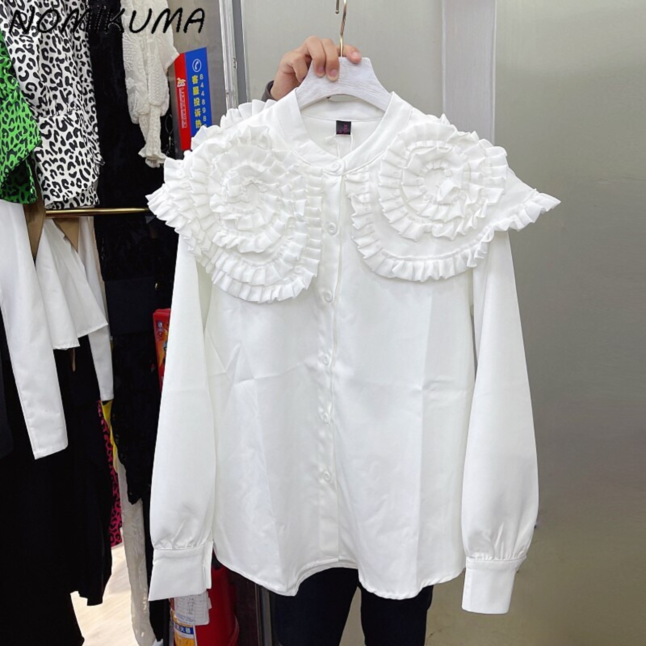 ノミクマ2022春の女性ブラウストップスシックな食用の木菌類ピーターパン襟シャツ因果長袖2022年春 ロング スプリング 春物 kor73585810016