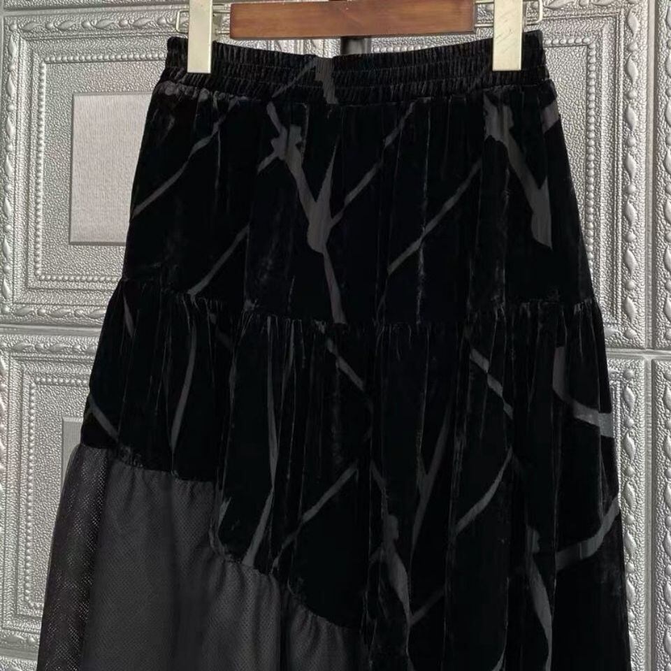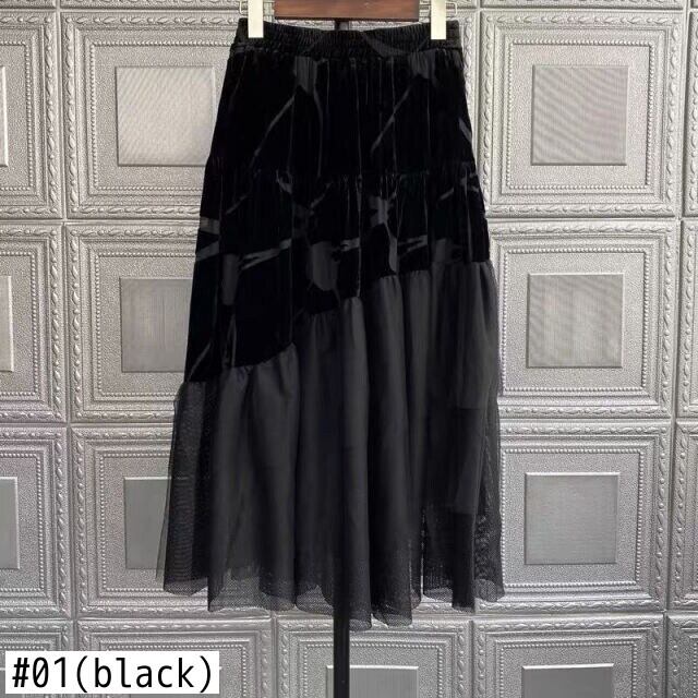 ノミクマベロアウーマンスカートシックガーゼパッチワークスタイルAラインスカート2022スプリングボトムスファルダスモーダ 春物 kor17524190721