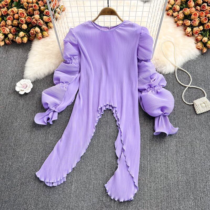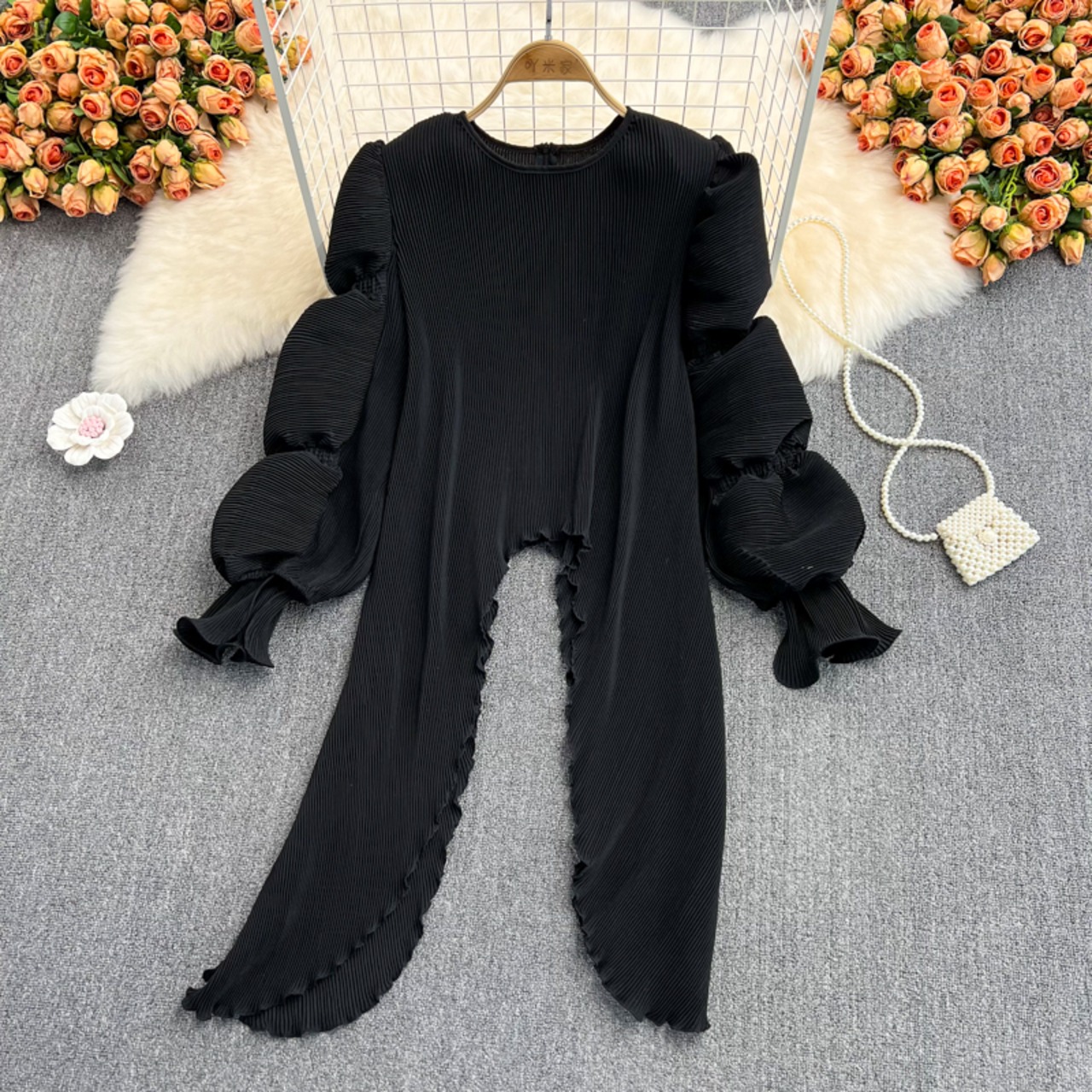 のみくま不規則なOネックパフスリーブウーマンドレス2022CausalVestidosソリッドドレス6N867 ソリッドカラー kor4033741738