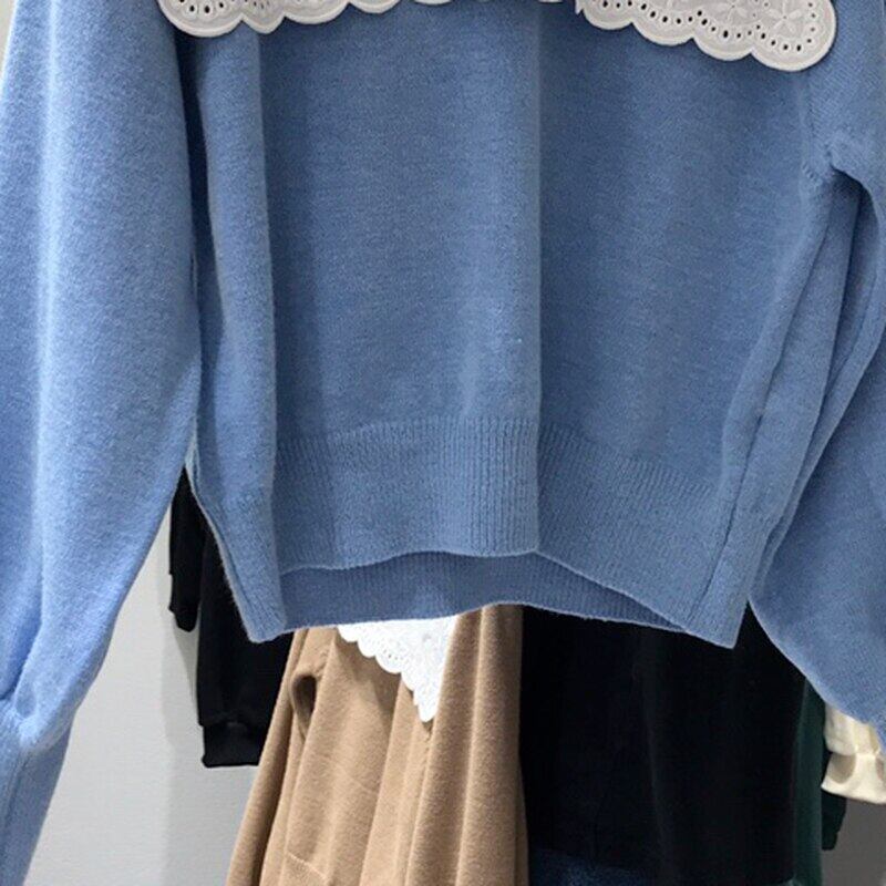 ノミクマ2021スウィートピーターパンカラーニットトップス因果長袖女性セータープルオーバーニット6X714 ロング 大人ガーリー キュート カジュアル kor33771116070