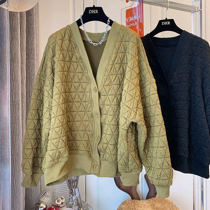 ノミクマアーガイルスウェットシャツコートカーディガンカジュアル長袖Vネックパーカーレディース2021シングルブレストジャケット6M004 ロング kor9450741896