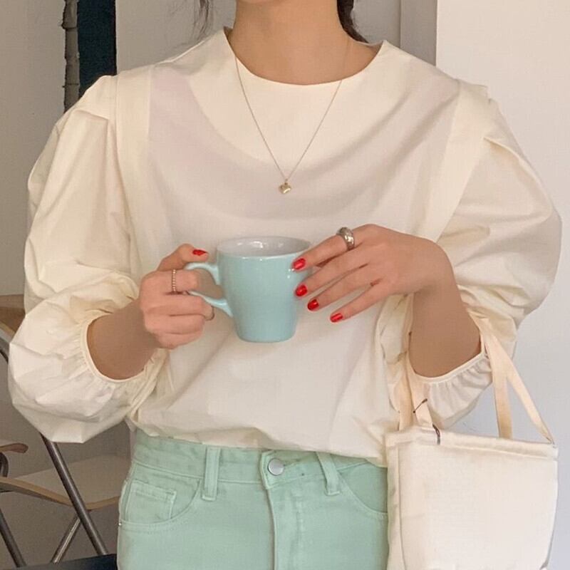 ノミクマパフスリーブレディースシャツシックな秋冬ブラウストップスCausalSolid De Moda 2021 Verano 6V861 オータム 秋物 ウィンター 冬物 ソリッドカラー kor65345798526
