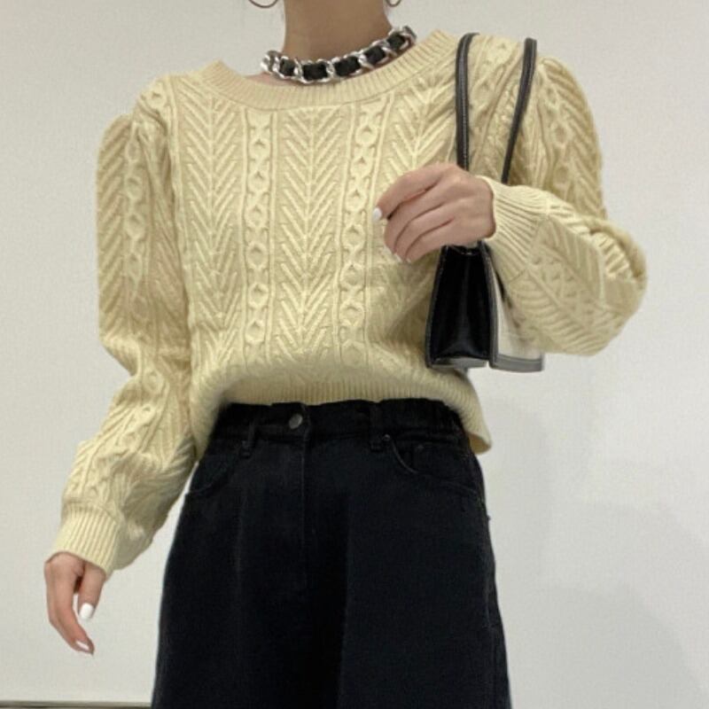 のみくまスウィートボウ包帯セーターパフスリーブOネックニットカーディガン2021秋冬シックニットトップス6V021 リボン 大人ガーリー キュート カジュアル オータム 秋物 ウィンター 冬物 kor28540448211