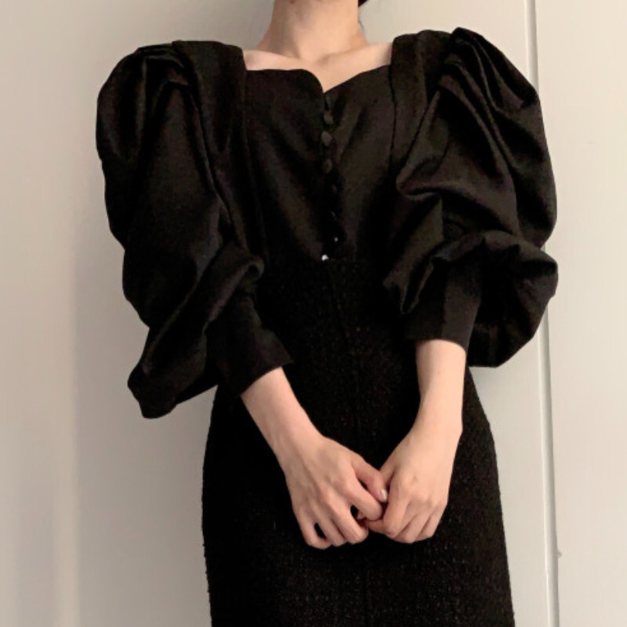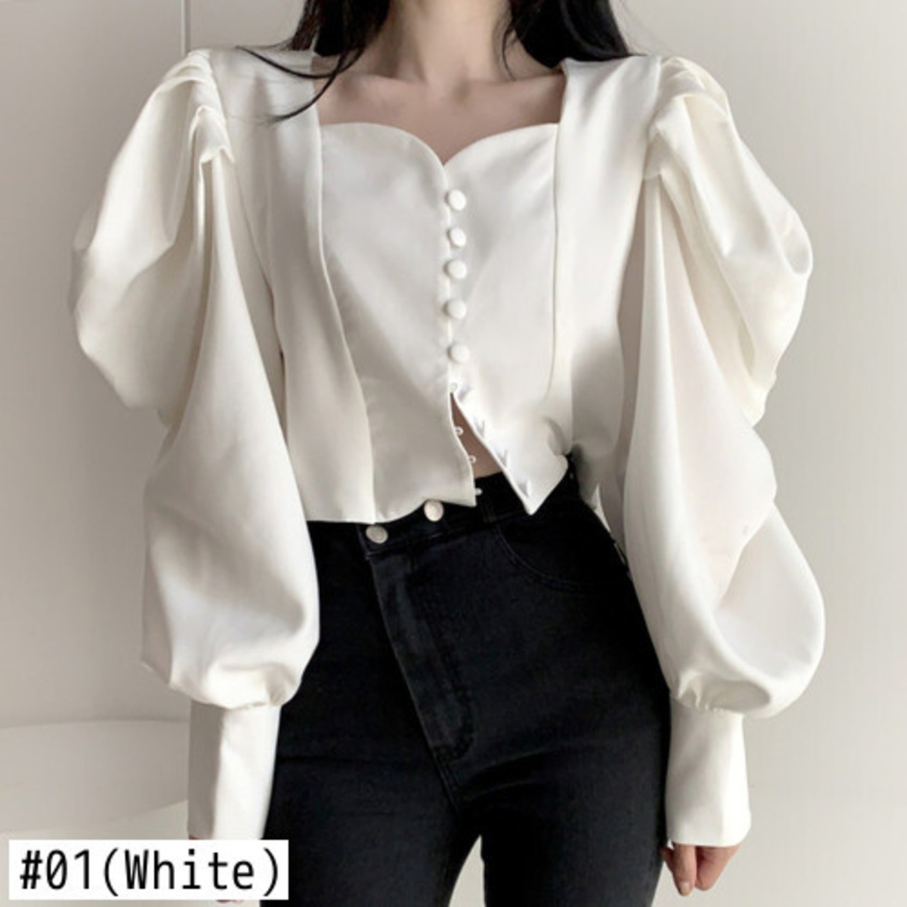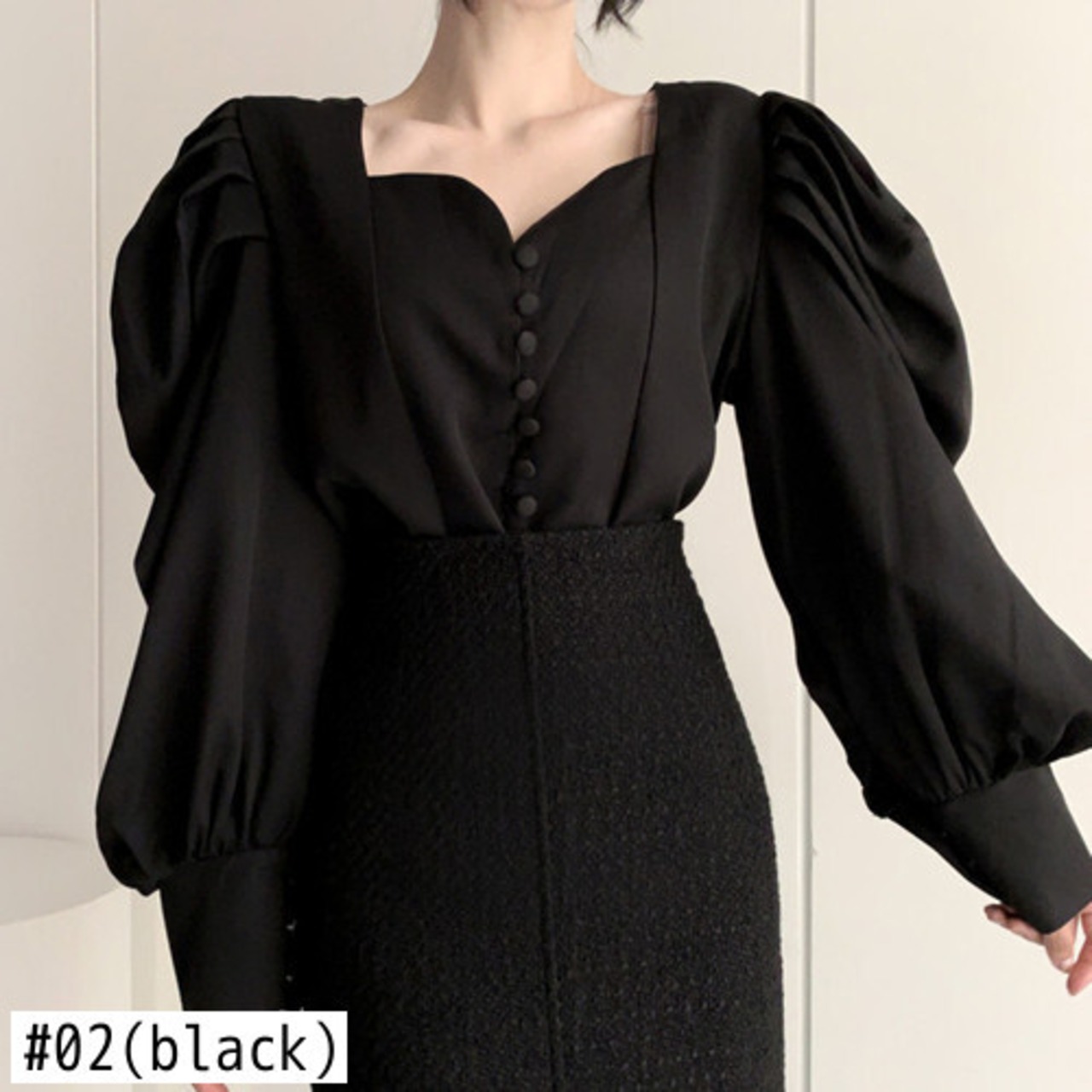 のみくまスクエアカラーシャツレディースパフスリーブウエストショートブラウス2021秋シングルブレストトップ6V546 オータム 秋物 スクウェア kor59314404919