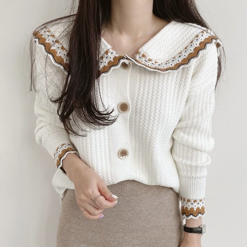 ノミクマシックピーターパンカラーウーマンセーターコートカジュアル長袖ニットカーディガン2021秋冬ニット6X752 ロング オータム 秋物 ウィンター 冬物 kor20471566742