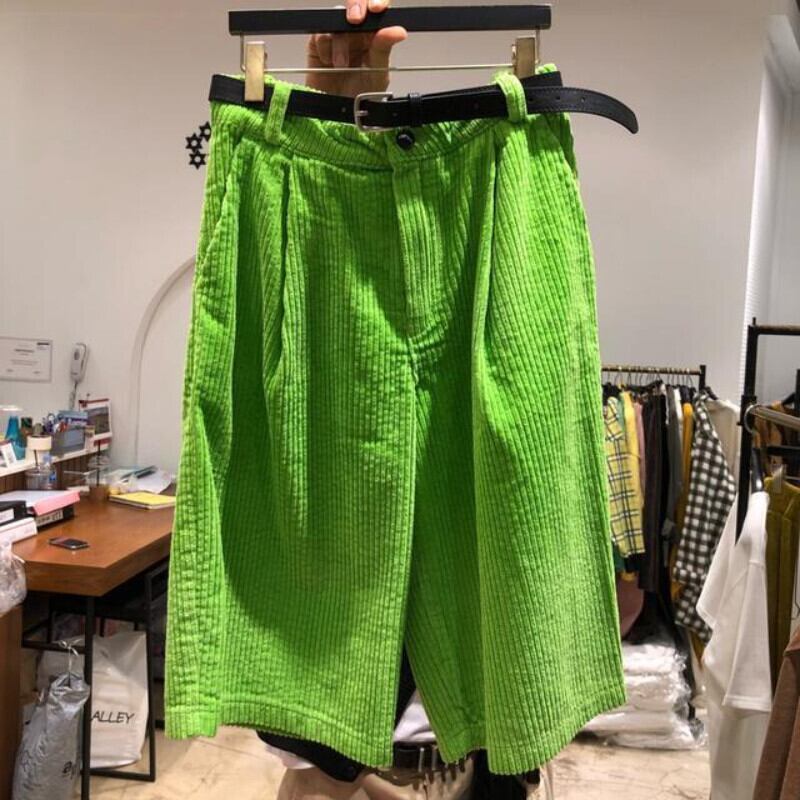 ノミクマ2021サマーコーデュロイハーフパンツベルトウエストレディースボトムスカジュアルワイドレッグパンツフェミニモスカプリ6H946 夏物 ハーネス ワイドパンツ kor47302405089