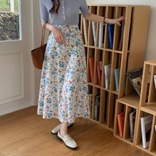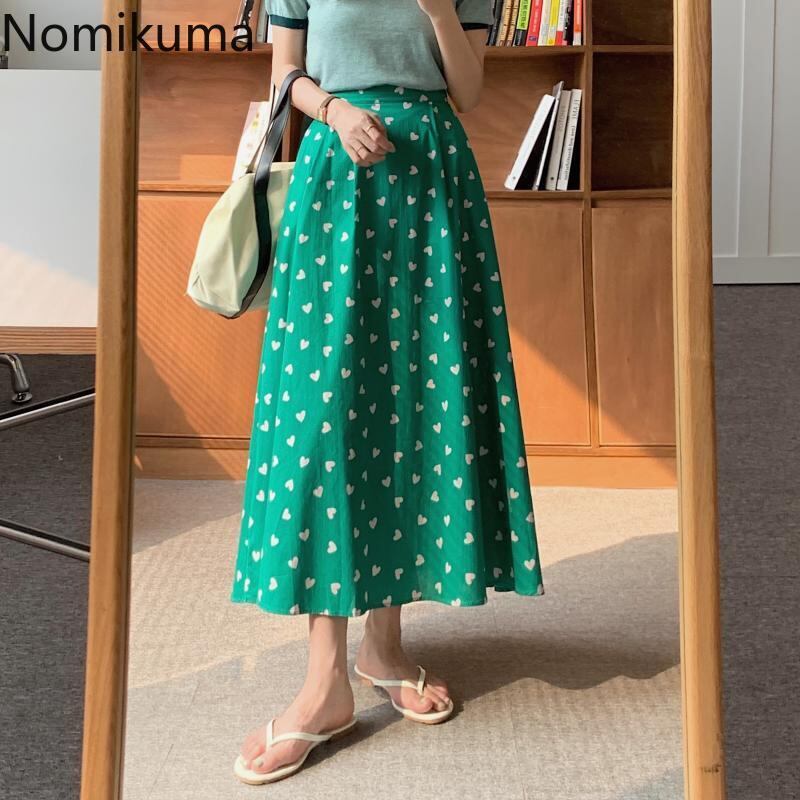 のみくまシックラブハートプリントスカートウエストAラインミッドカーフスカートレディース2021年夏ファルダスモーダ6J229 サマー 夏物 kor34791657996