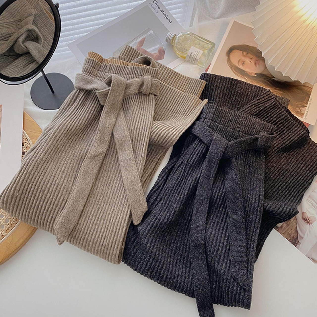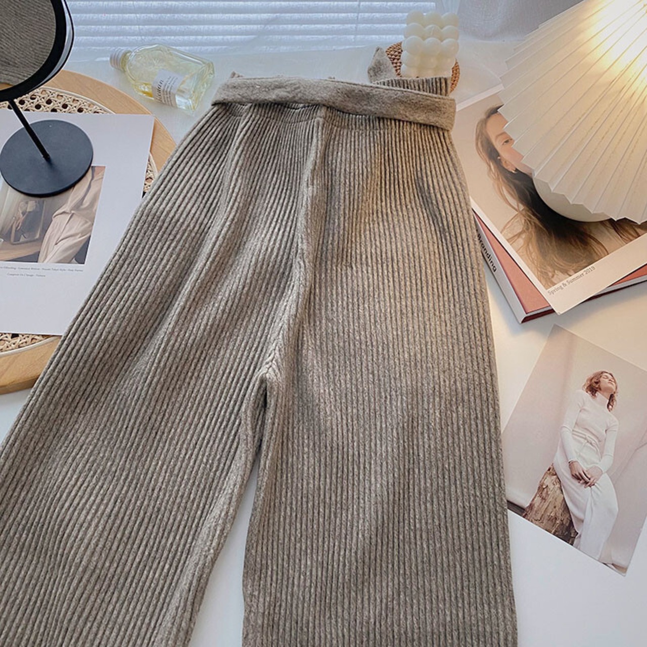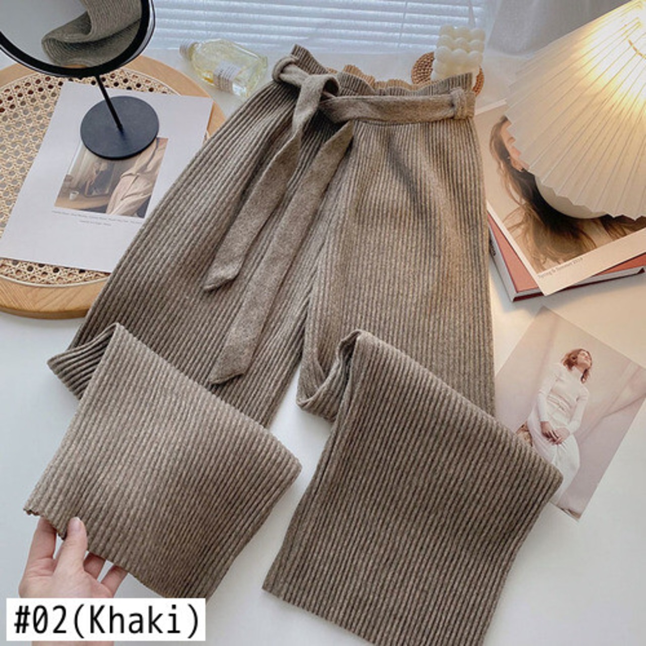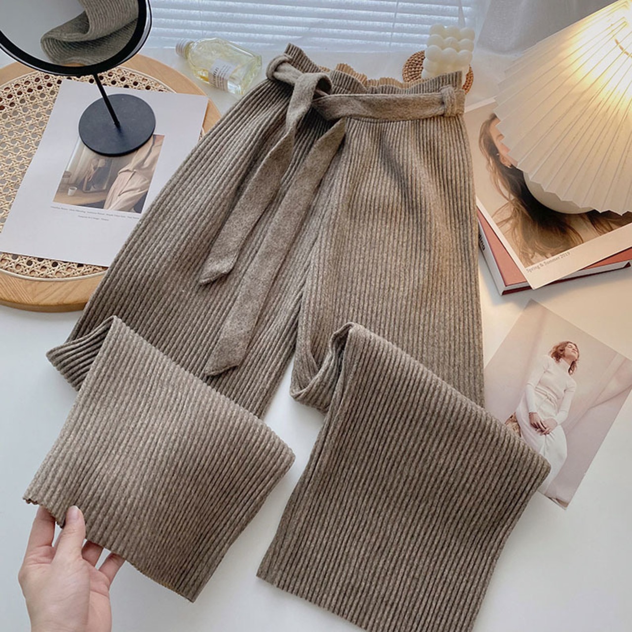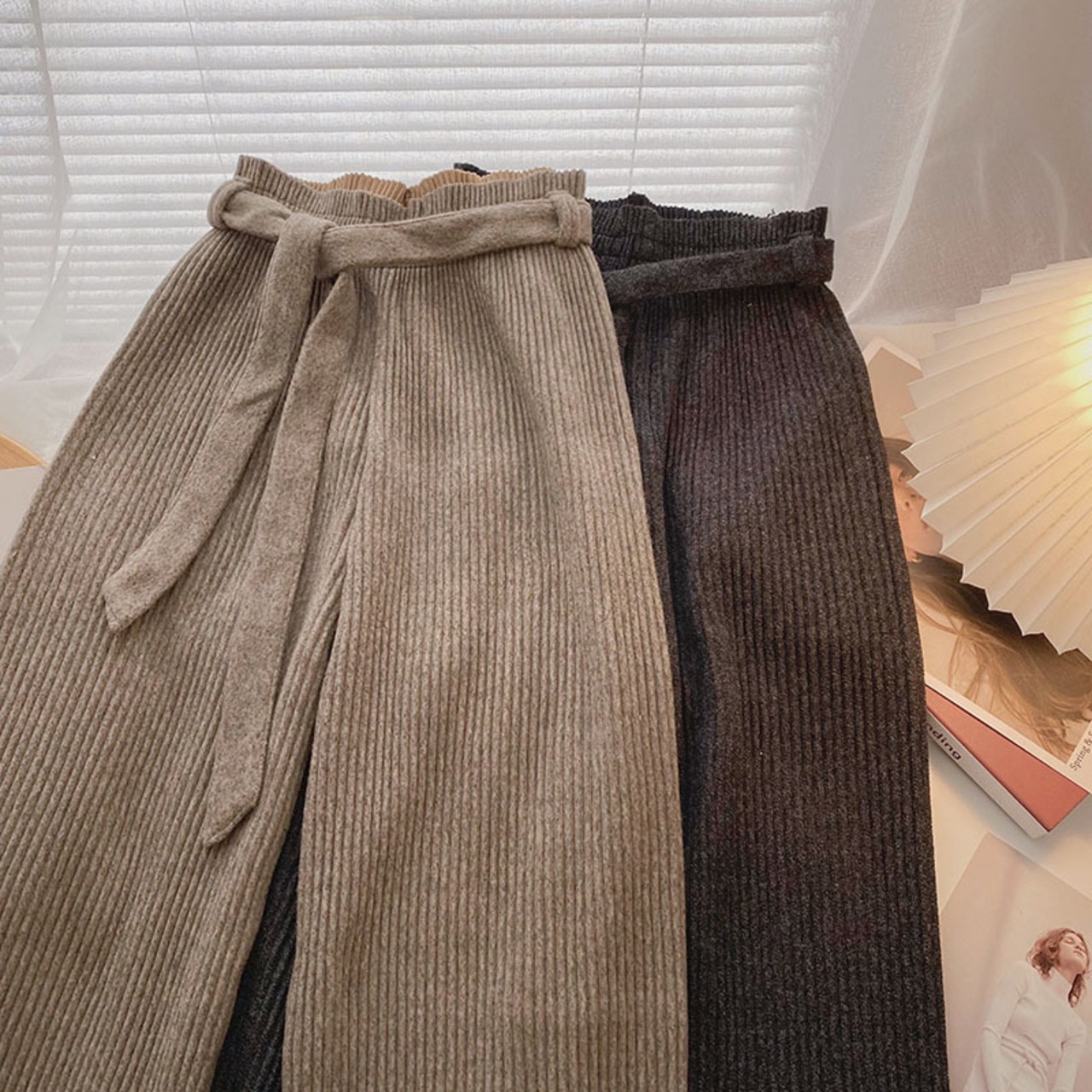 ノミクマニットワイドレッグパンツ女性2021年秋冬ロングパンツカジュアルウエストレースアップセーターパンツ6V654 オータム 秋物 ウィンター 冬物 ワイドパンツ kor4993997728