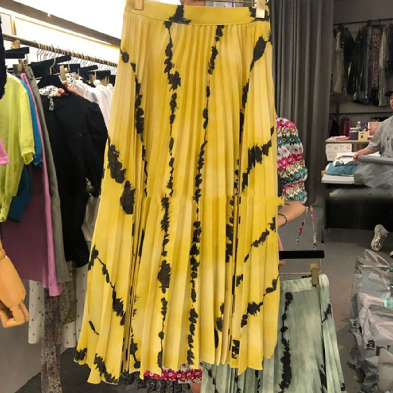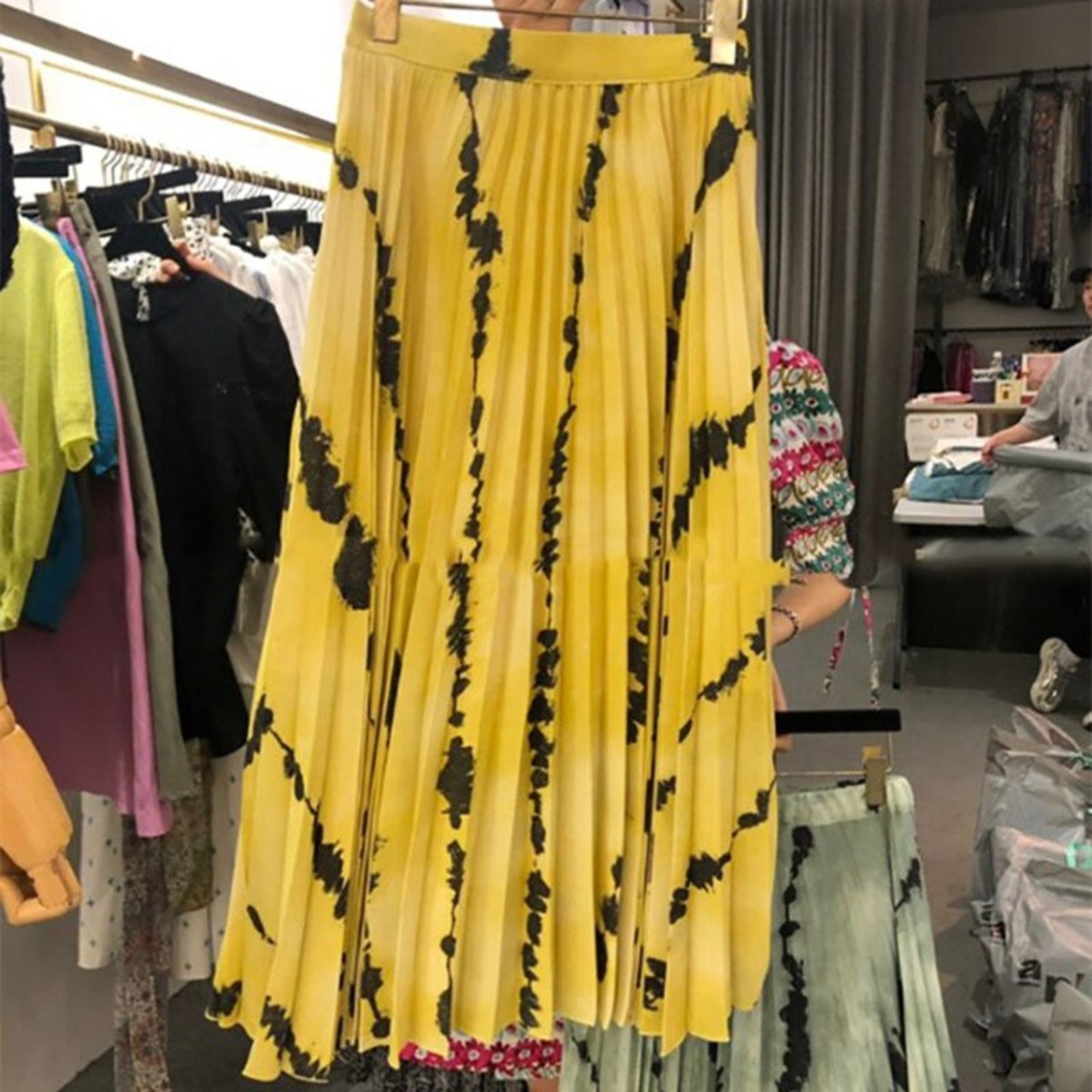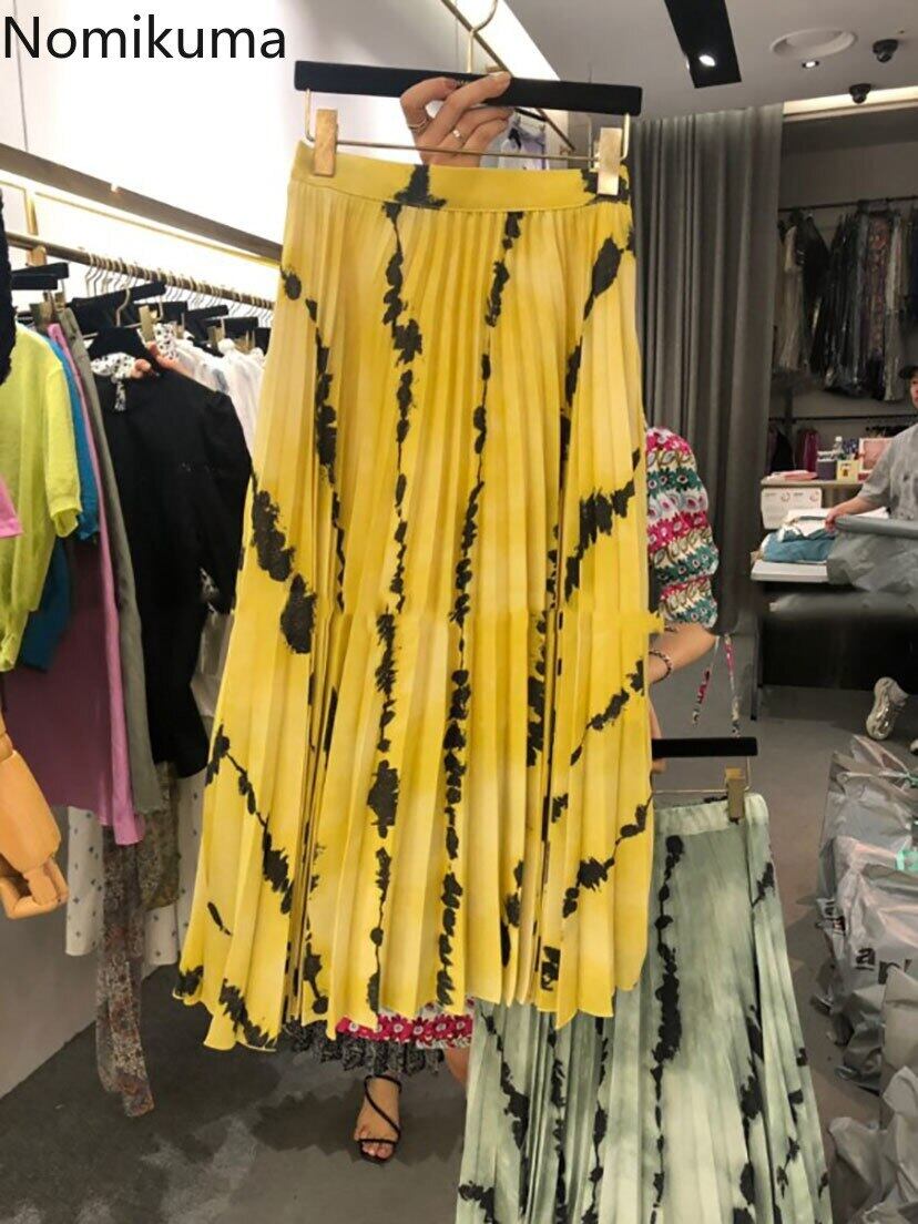 ノミクマフローラルウィメンズプリーツスカートコーザルウエストAラインミッドカーフスカート2021Spring Faldas 6F347 スプリング 春物 花柄 kor39782287312