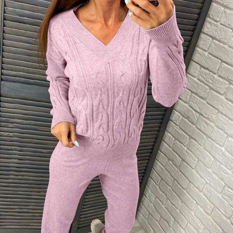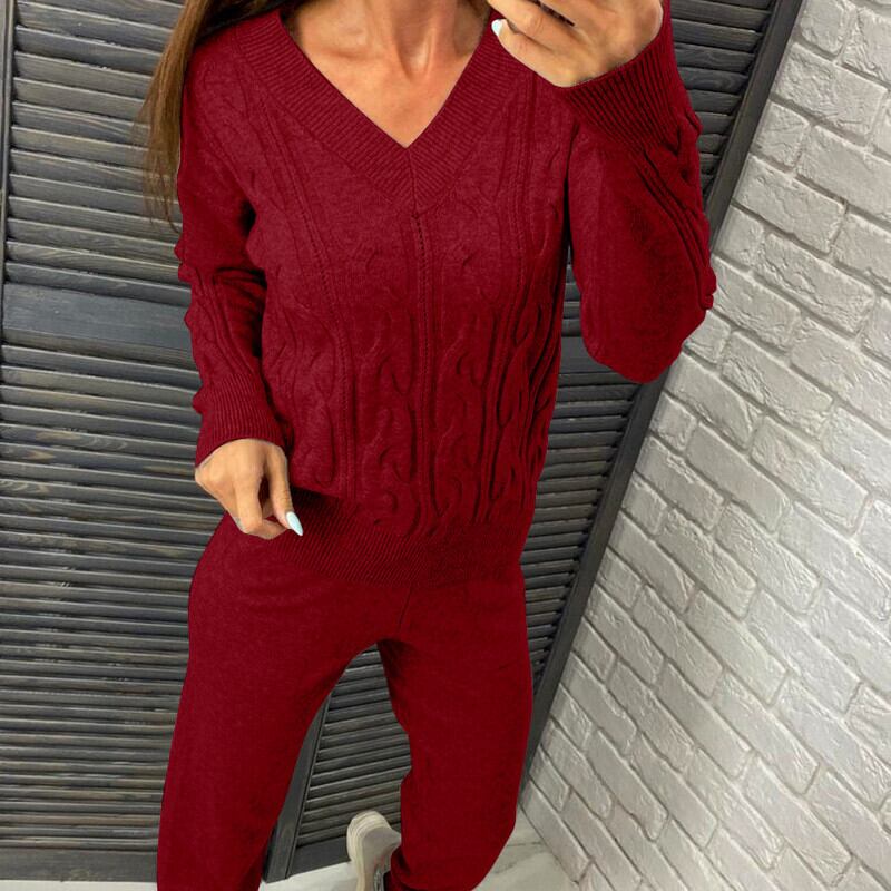 のみくまニットパンツセットツイストプルオーバーVネック長袖セーター+ニットロングパンツ2021ツーピーススーツ6Z947 kor23710096821