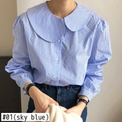 のみくまストライプレディースブラウススウィートピーターパンカラースウィートシャツ2021春の因果パフスリーブ6E003 大人ガーリー キュート カジュアル スプリング 春物 kor82635123726