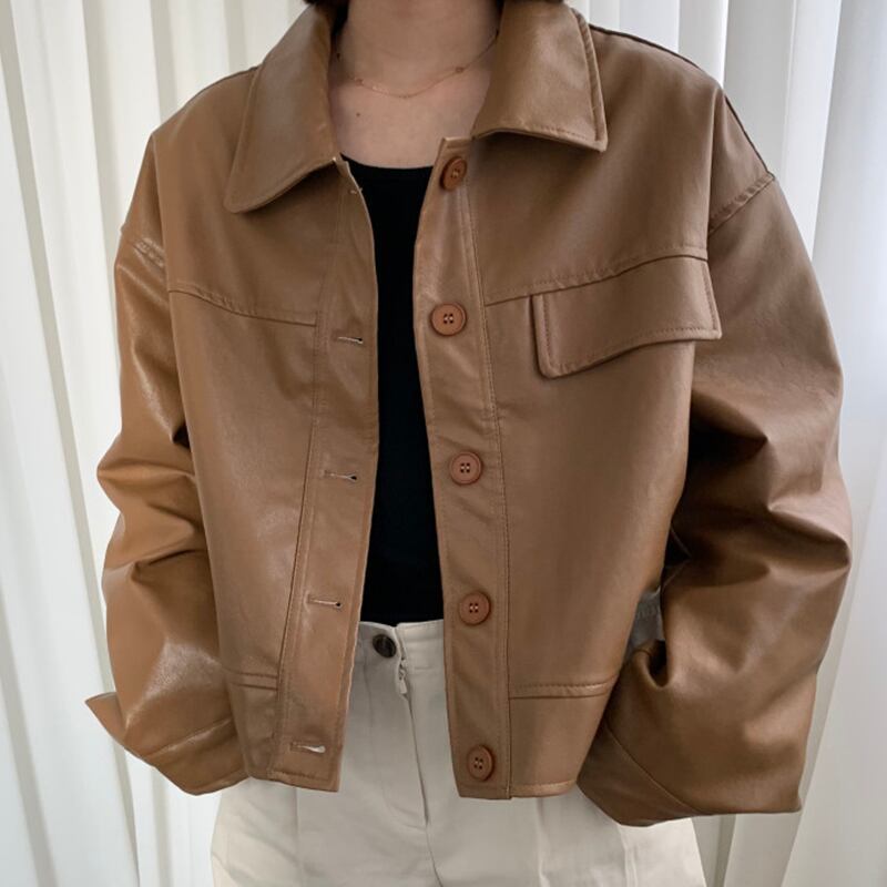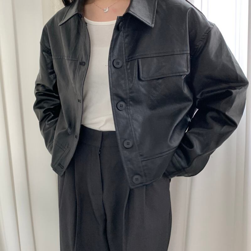 のみくま2021秋PUレザーショートレディースコートカジュアル長袖ターンダウンカラーアウタートップスジャケット6X006 ロング オータム 秋物 kor54965231167