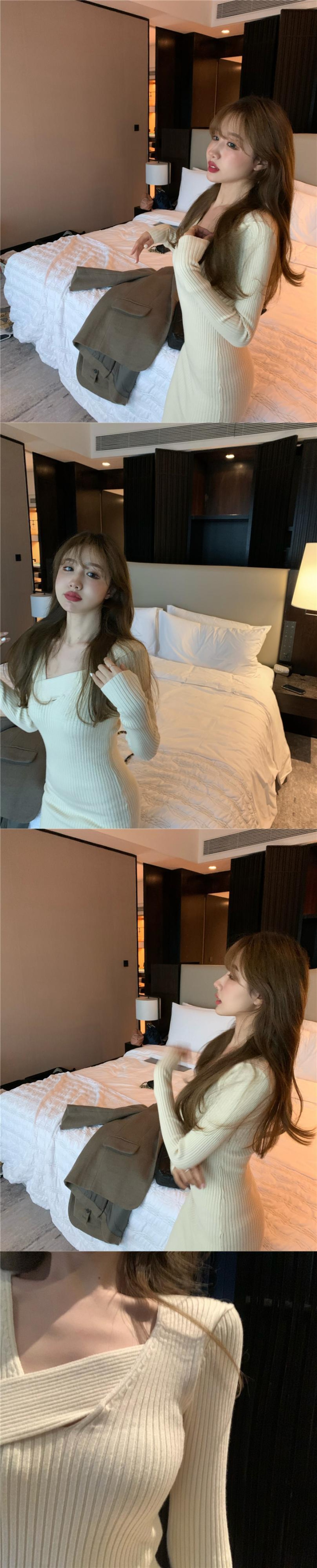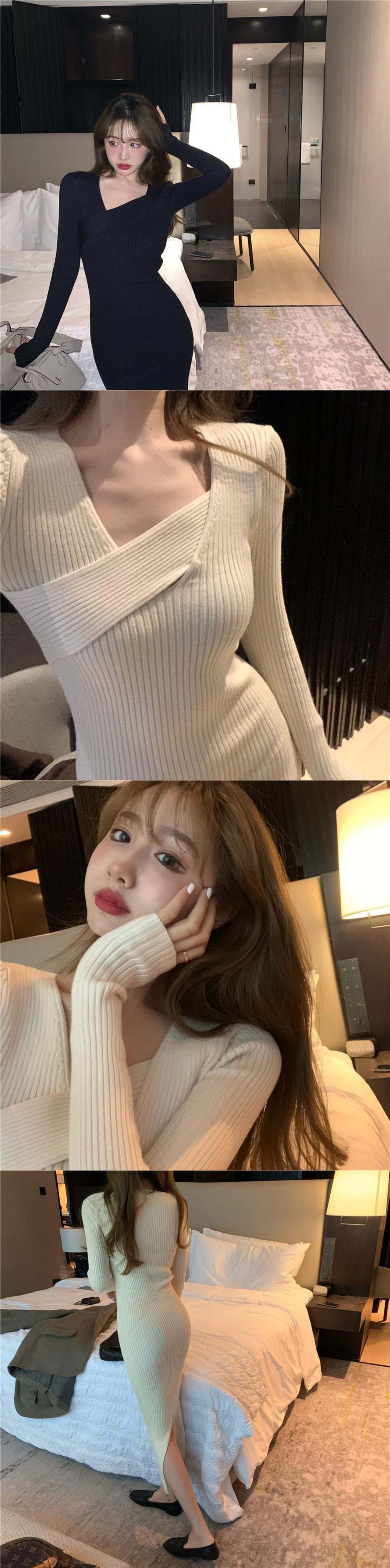 ノミクマレディースウィンターロングスリーブボディコンセータードレスセクシーベーシックベスティドオータムスリムイレギュラーVネックロングニットワンピース6D629 長袖 秋物 冬物 kor49557747281