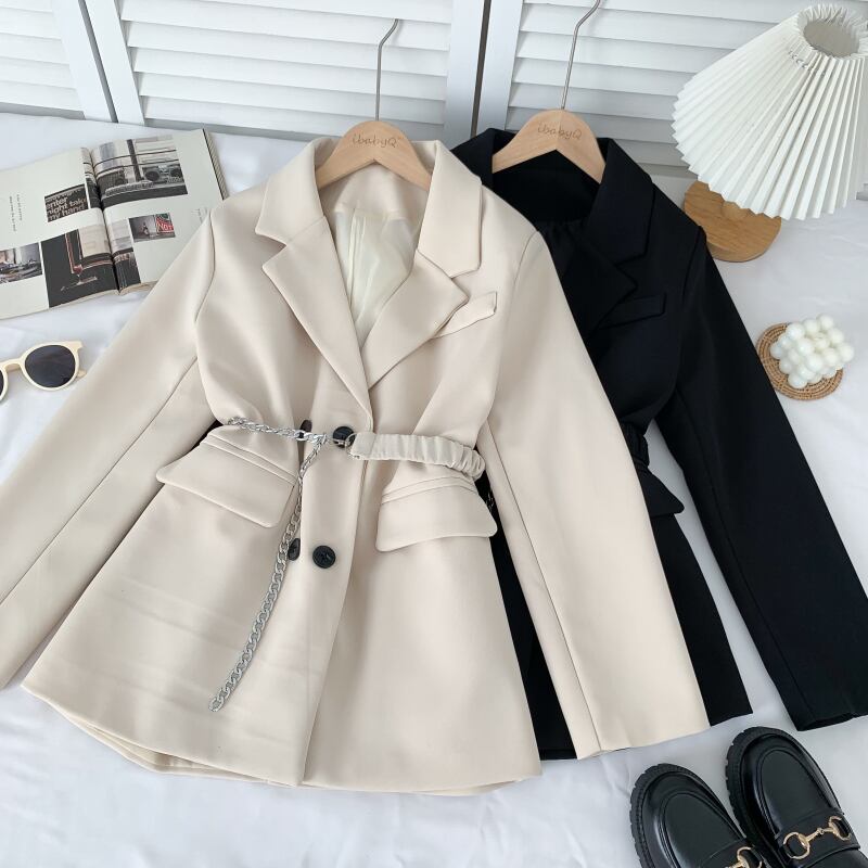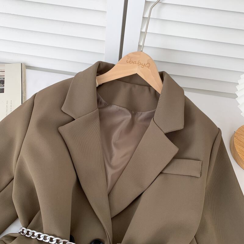 ノミクマ2021レディースブレザーコートベルトスリムウエストダブルブレストスーツジャケット長袖ノッチ付きカラーブレザー6V656 ロング ハーネス kor41183791389