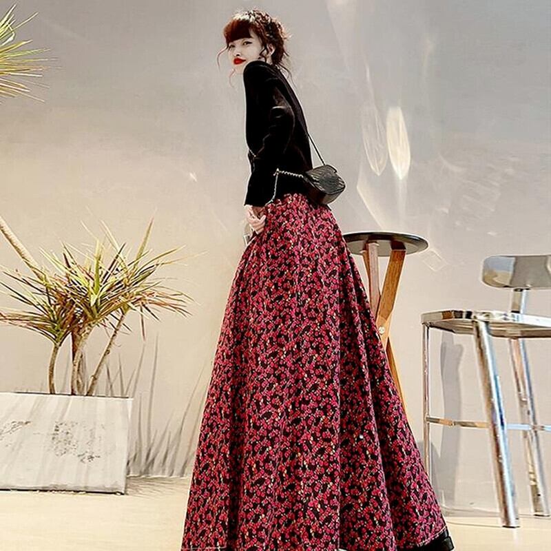 ノミクマ2022春のウエストウーマンフローラルスカートCausalA-lineスカートボトムスFaldasModa スプリング 春物 花柄 Aライン kor47885143293