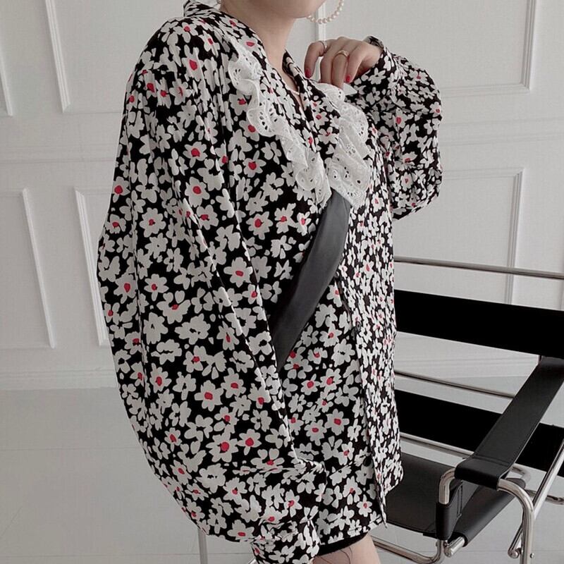 のみくま長袖フローラルブラウスレースパッチワークターンダウンカラーウーマンシャツ ロング 花柄 kor8594786406