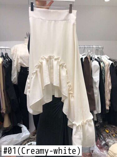 のみくま2021春女子スカート因果不規則フリルパッチワークスカートウエストファルダス6E011 スプリング 春物 kor27955120002
