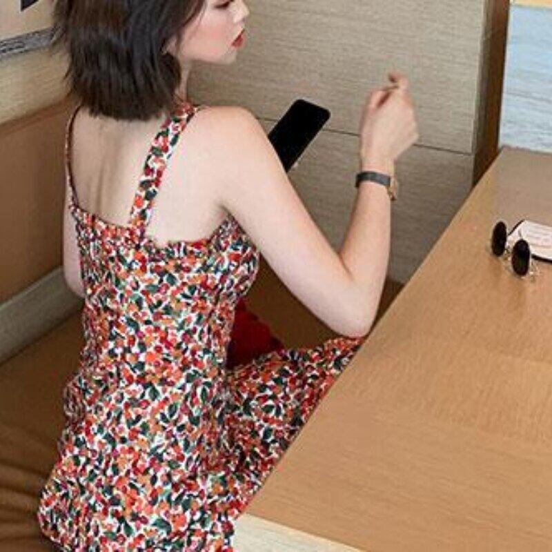 ノミクマフローラルスリングドレスセクシーなストラップレスサマースリムウエストドレス2021女性 夏物 花柄 kor27790938736