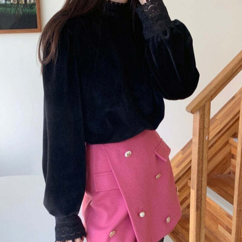 のみくまウエストシックボタンウーマンスカート因果Aラインミニスカート不規則なファルダスモーダ2022春 スプリング 春物 kor43865281946