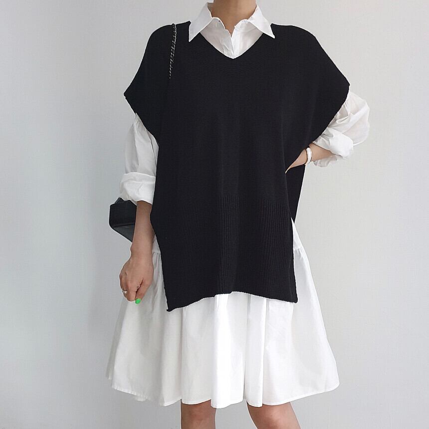 のみくまシックな女性のドレスセットターンダウンカラーランタンスリーブドールドレス+スプリットニットノースリーブベストスーツ6C748 kor6594224965