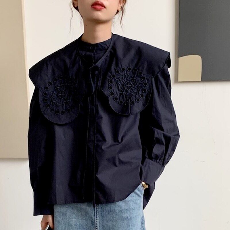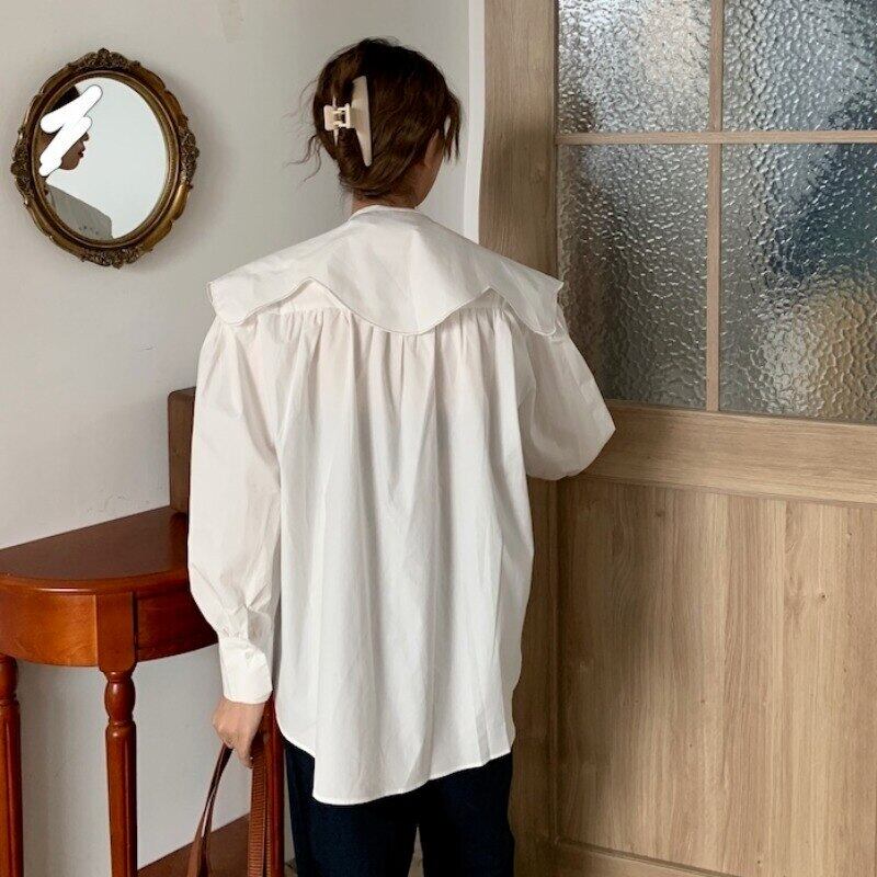ノミクマ蝶ネクタイピーターパンカラーレディースブラウスシックパフスリーブシャツ2021年秋スウィートトップ6L844 リボン 大人ガーリー キュート カジュアル オータム 秋物 kor29382425407