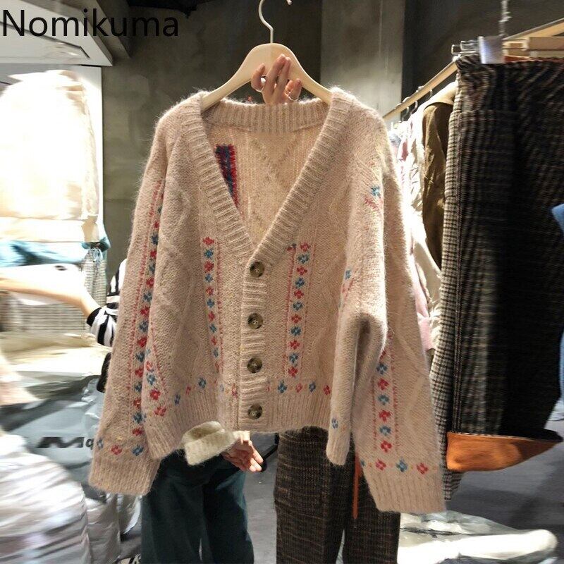 ノミクマプル2020秋冬スウィートフローラルウォームセーターコート長袖Vネックカジュアルニットカーディガンジャケット6B413 ロング 大人ガーリー キュート オータム 秋物 ウィンター 冬物 花柄 kor89819365669