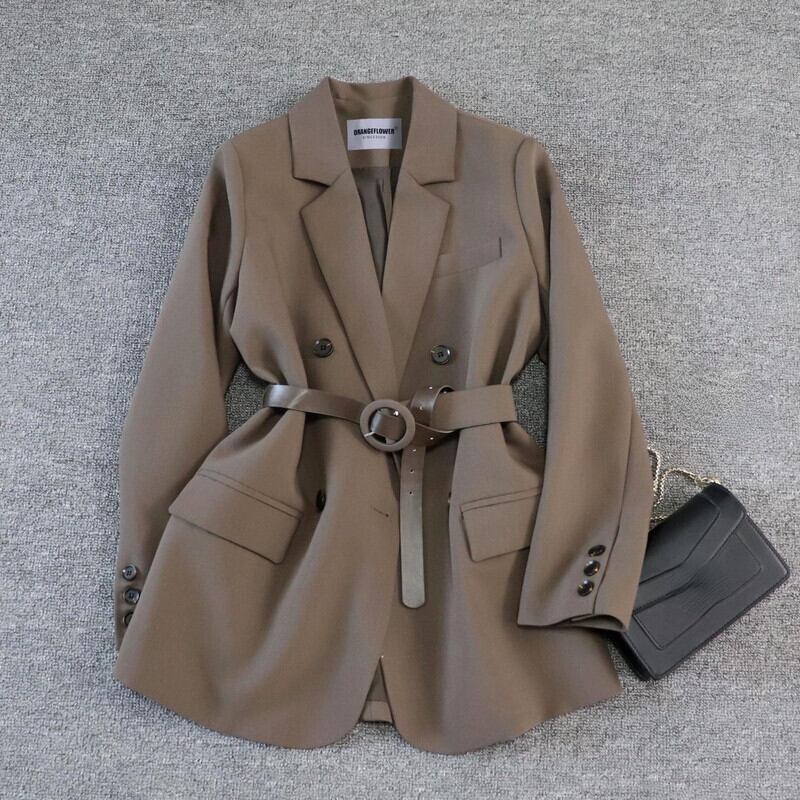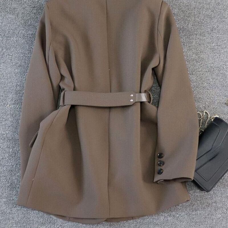 のみくまベルトスリムウエストジャケットレディース2022春ブレザー長袖ノッチカラーコート ロング スプリング 春物 ハーネス kor2593280225