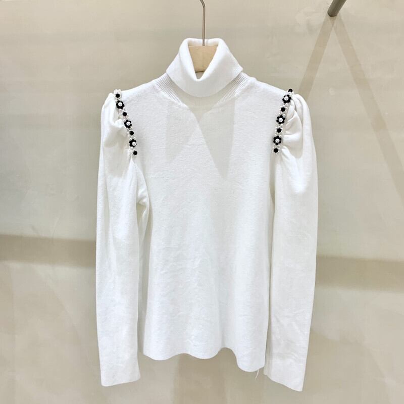 ノミクマ2021秋冬プルシックビーズパフスリーブタートルネックニットプルオーバーニットトップス6N754 オータム 秋物 ウィンター 冬物 kor86182572504