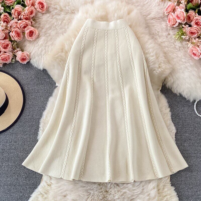 のみくま秋冬セータースカートレディース2021ウエストニットスカートプリーツFaldasDe 6X436 オータム 秋物 ウィンター 冬物 kor90364166786