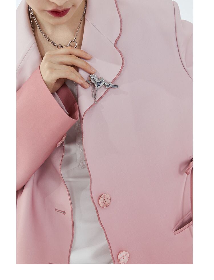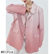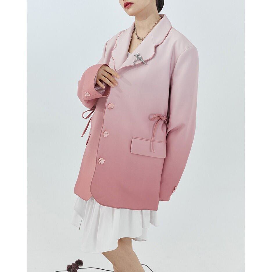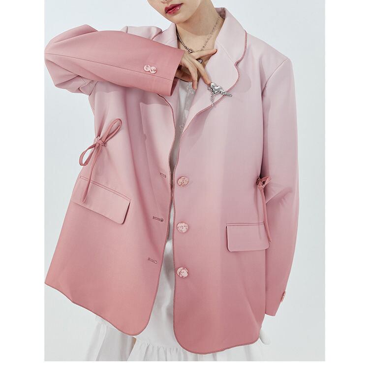 のみくま2022春ピンクグラデーション不規則な弓ルーズスーツジャケット女性長袖ターンダウンカラーブレザーコート ロング リボン スプリング 春物 kor52806514088