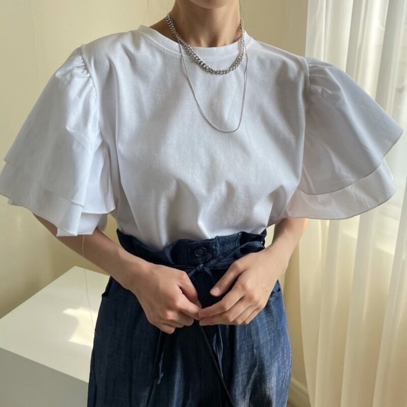 のみくまシックダブルフレアスリーブウーマンTシャツCausalO-neckグラフィックTシャツCausalSweet De 2021 6K830 大人ガーリー スウィート キュート カジュアル Oネック kor48402664955