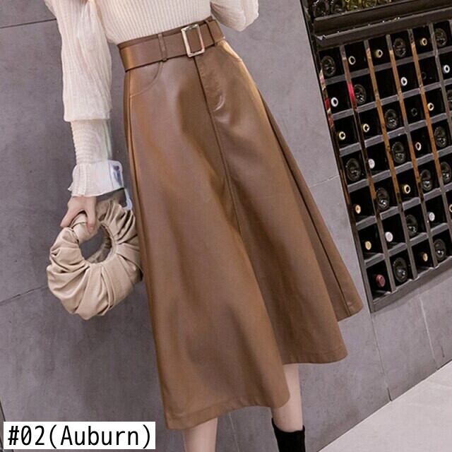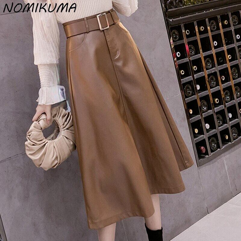 のみくまPuレザーウーマンスカート2021ウエストスカートCausalA-lineミッドカーフFaldasModa 6N289 Aライン kor36080980870