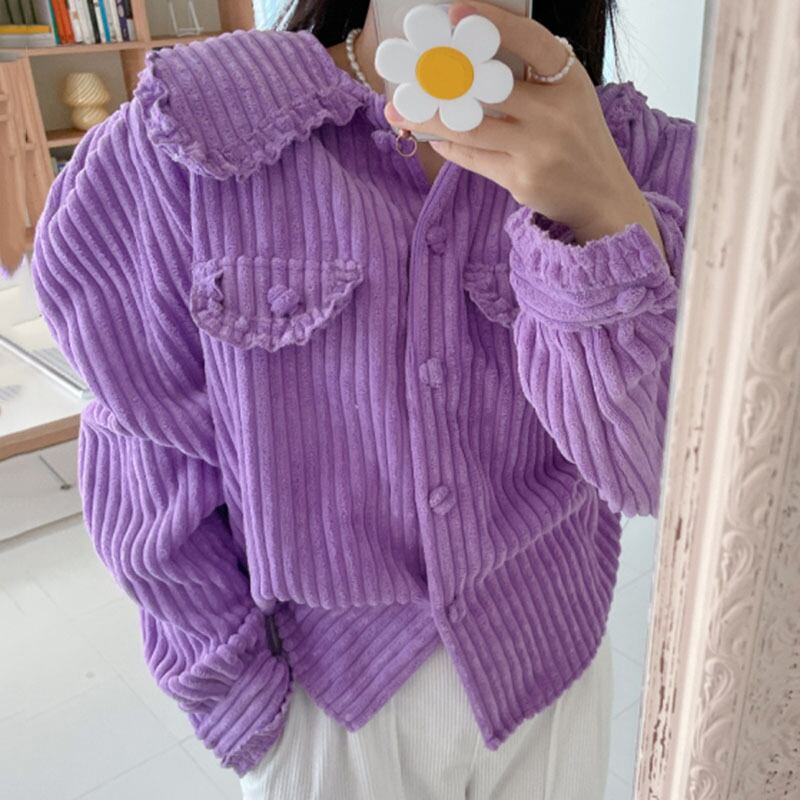 ノミクマシックスウィートピーターパンカラーブラウスコートコーザルパフスリーブウーマンシャツジャケット2022春ベロアアウタートップ 大人ガーリー キュート カジュアル スプリング 春物 kor95172372679