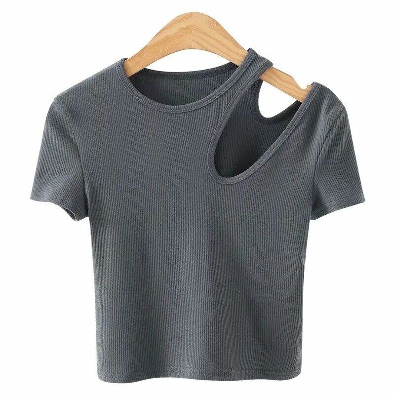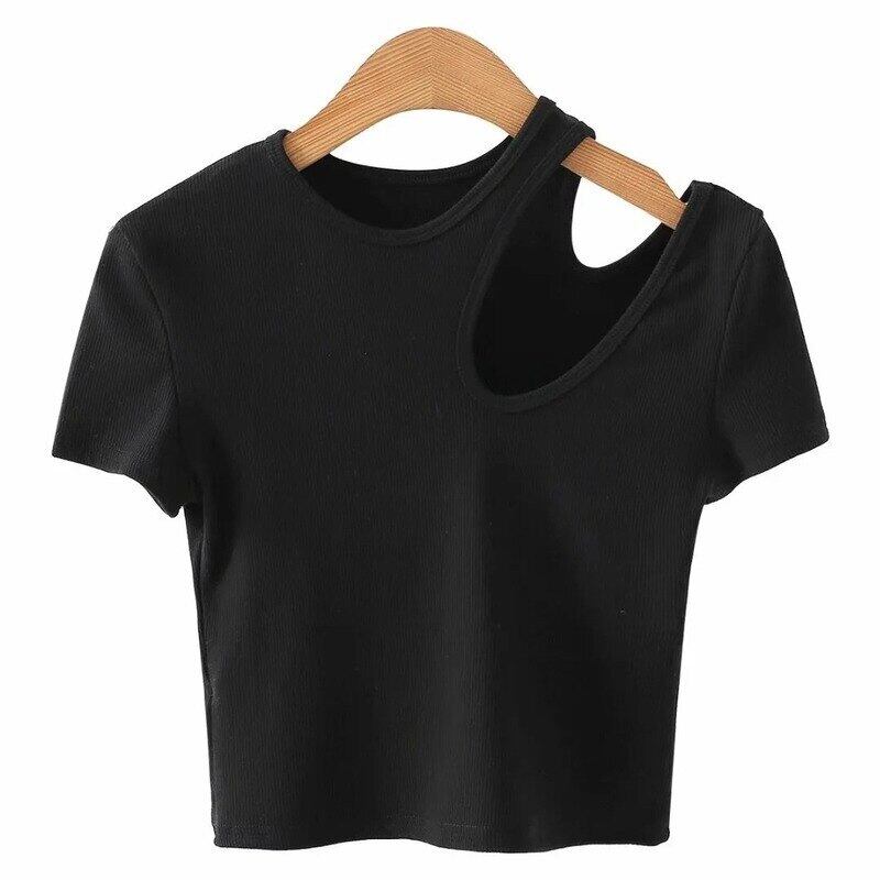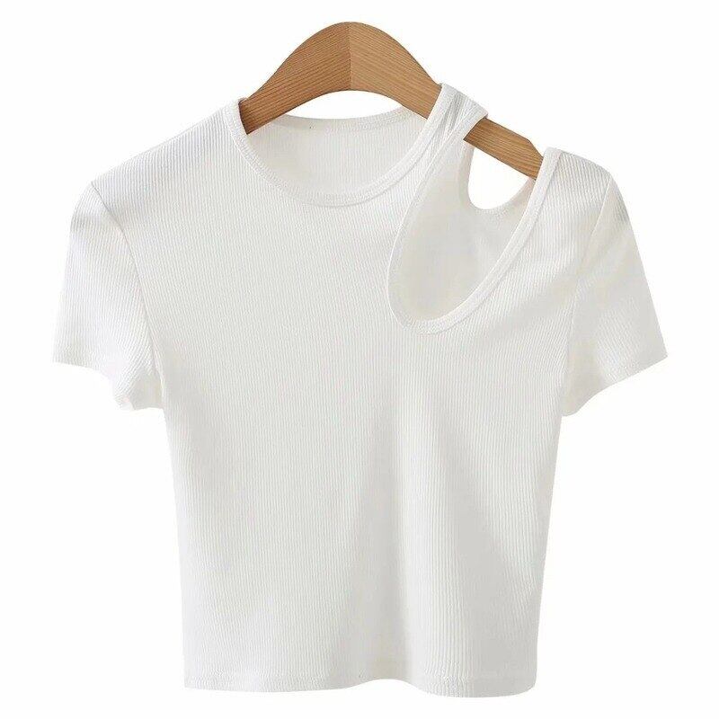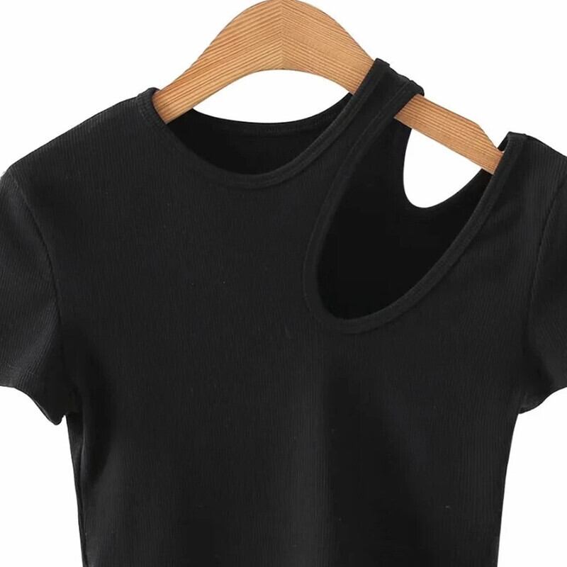ノミクマセクシーホローアウトスリムショートTシャツサマー半袖Oネックレディーストップス2021ソリッドクロップトップシャツ6G545 ハーフスリーブ 夏物 ソリッドカラー kor94548215900