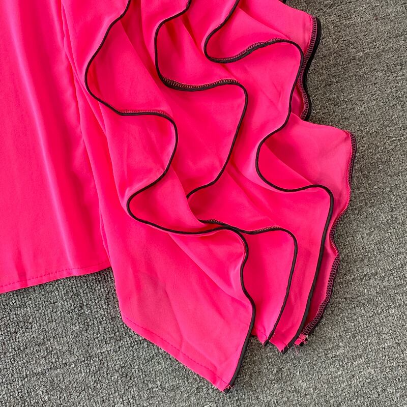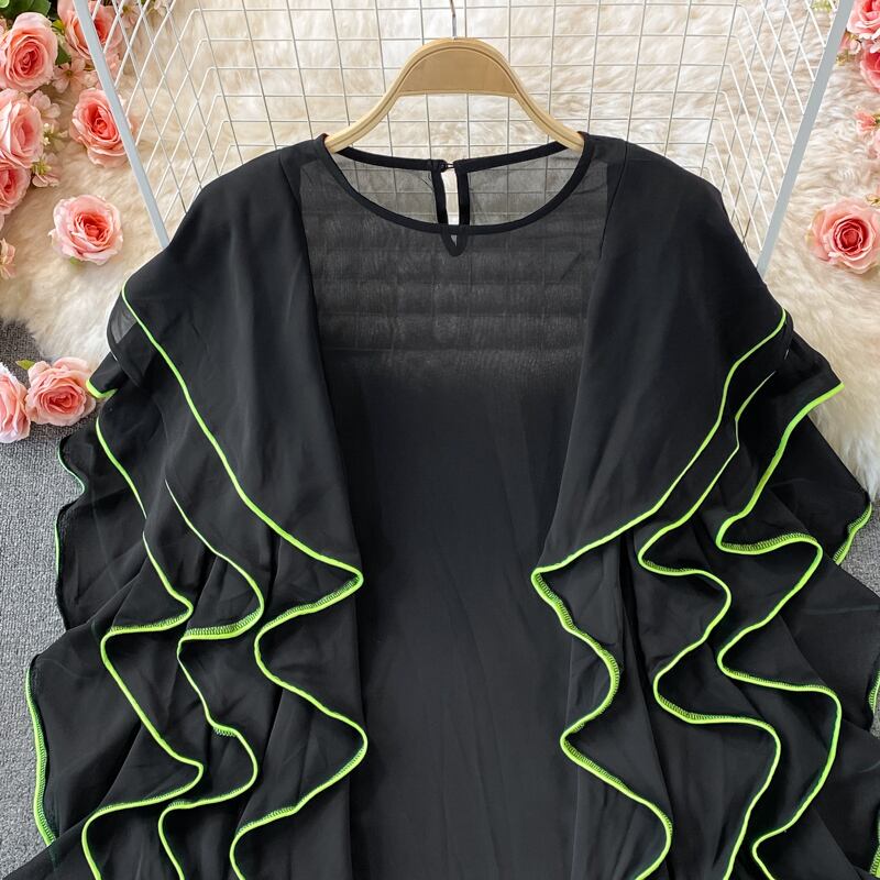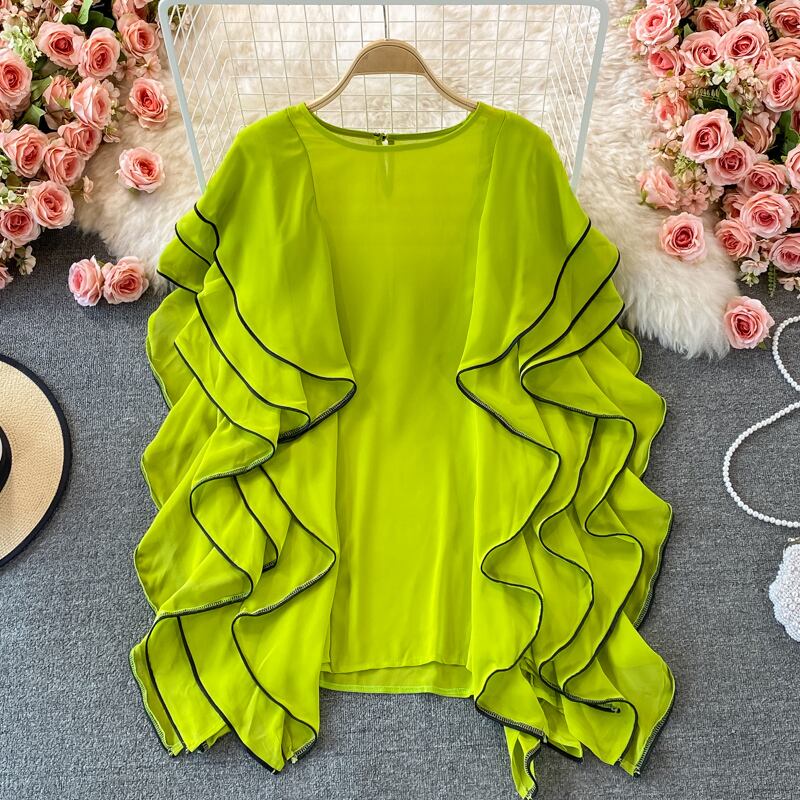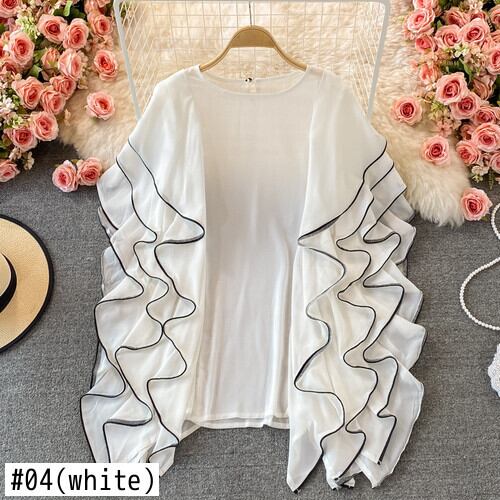 ノミクマヒットカラーフリルシフォンブラウスレディースカジュアル半袖Oネックトップス2021シャツ6K997 ショート ハーフスリーブ kor73928725144