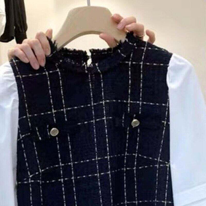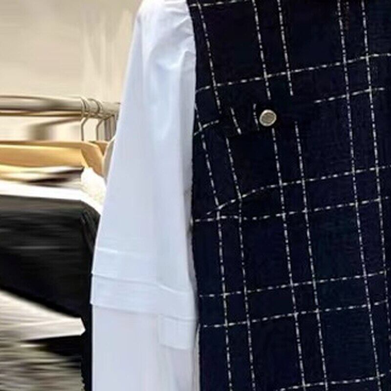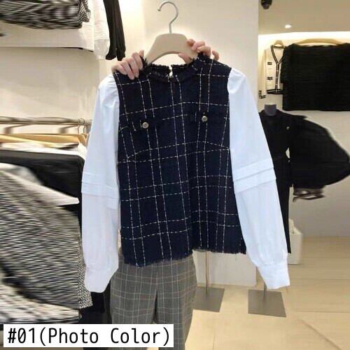 のみくまツイードパッチワークブラウスシャツ2021秋ヒットカラー長袖レディーストップスDe6Z015 ロング オータム 秋物 kor44154837904