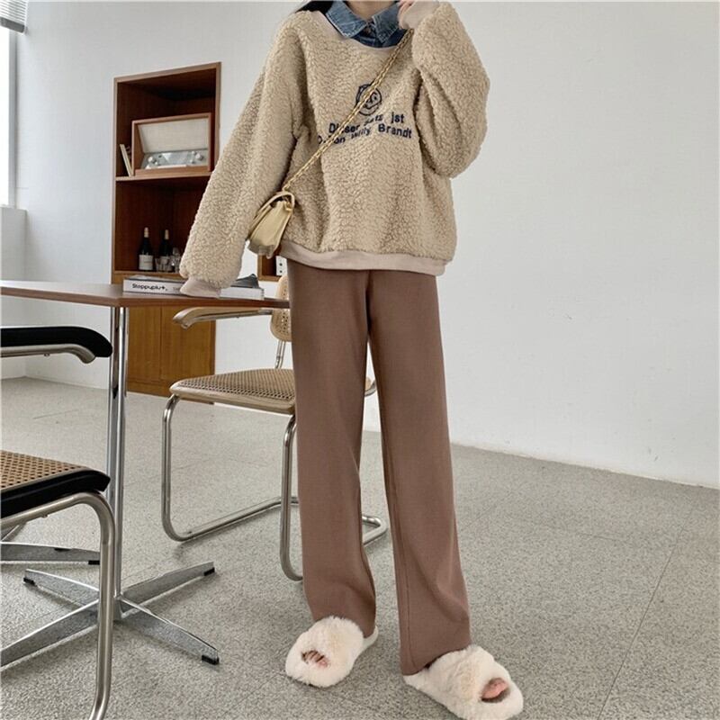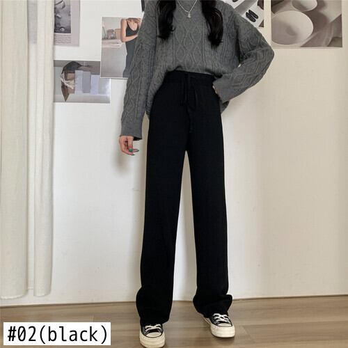 ノミクマレディースニットワイドレッグパンツ2021年秋冬ロングパンツカジュアルレースアップウエストセーターパンツ6V613 オータム 秋物 ウィンター 冬物 ワイドパンツ kor7534285536